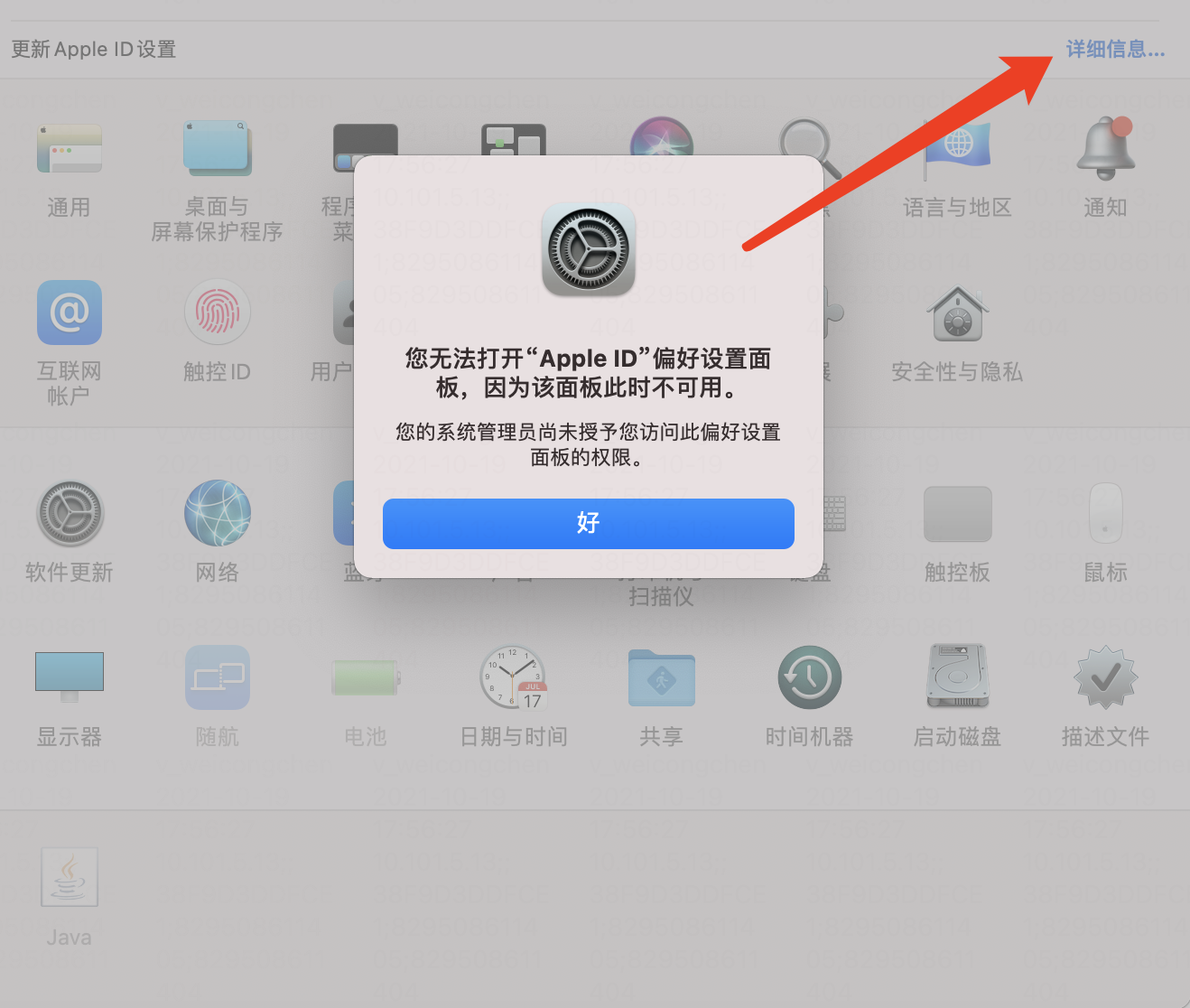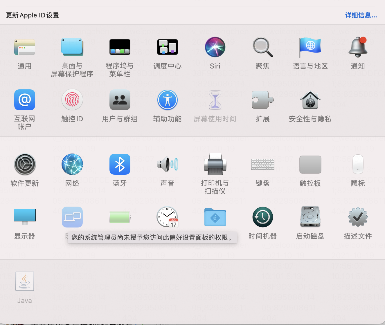 您的系统管理员尚未授予您访问此偏好设置面板的权限。