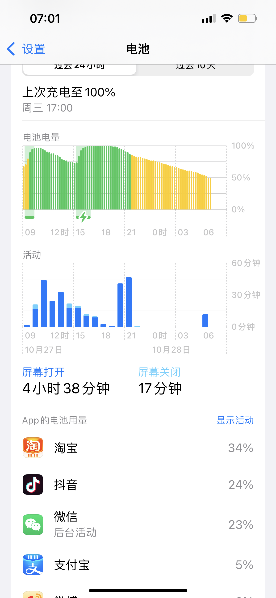 我的13待机耗电太可怕了,睡前90多的电,起床只剩50多(睡了8小时),我都是连接家里的wifi很稳定。我联系了售后,然后把app后台刷新关了,还有什么定位之类的各种耗电的都关了,睡前开省电模式测试了一下,耗电就5-8%左右,这还比较能接受。然后最近有一天睡前还是开了省电模式,一晚上还是耗电将近35%,我再去找了客服,远程给我电池做了测试,原来我app后台刷新不知道怎么被我点开了?开了8个应用主要是什么微信微博钉钉之类的app,但是客服说就算是开了app后台刷新功能耗电那么多也不太正常的让我晚上开飞行模式看下是硬件还是软件的问题。好郁闷啊不知道是不是我的手机有问题,现在还没过14天退换货,有人一样吗