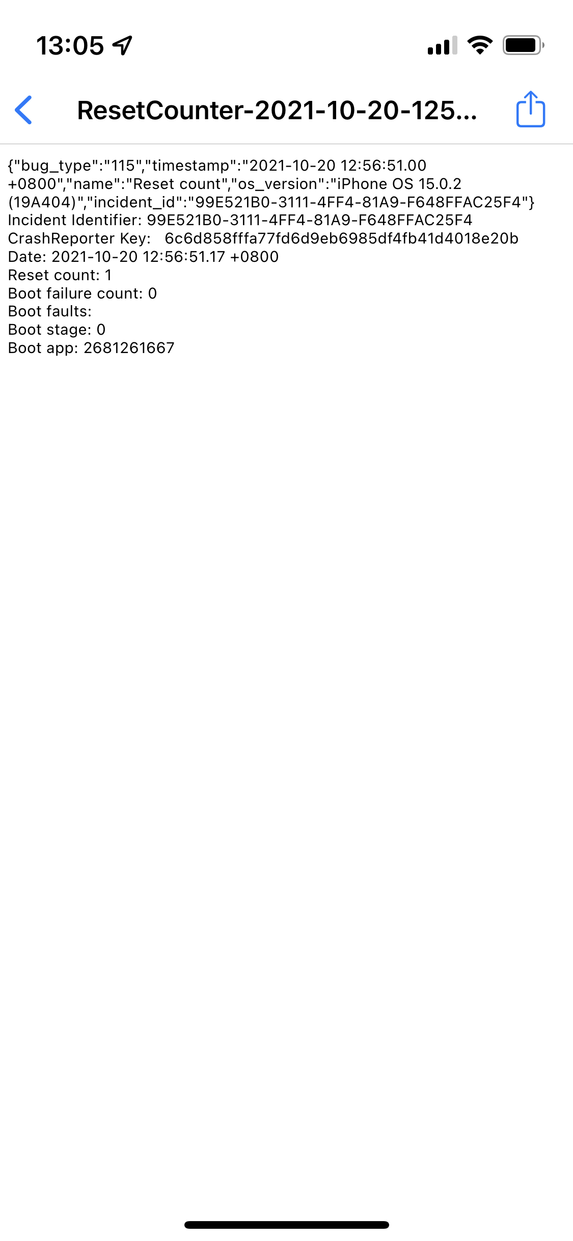 今天问了下朋友,也是13mini,同样的问题。系统都是最新的15.0.2。以下是重启的代码。