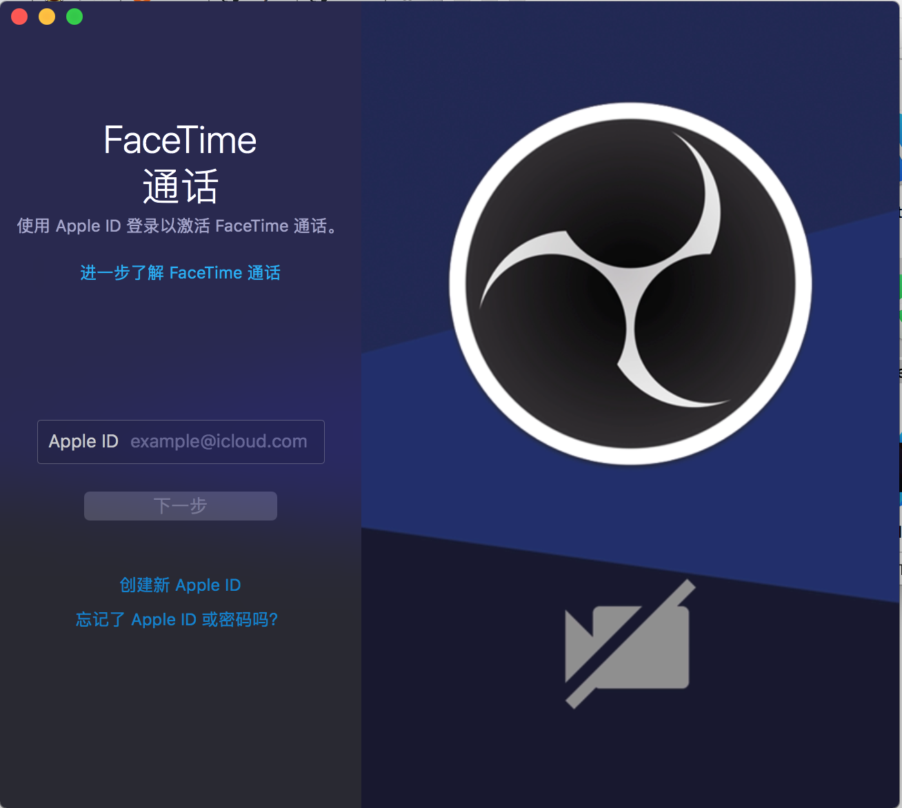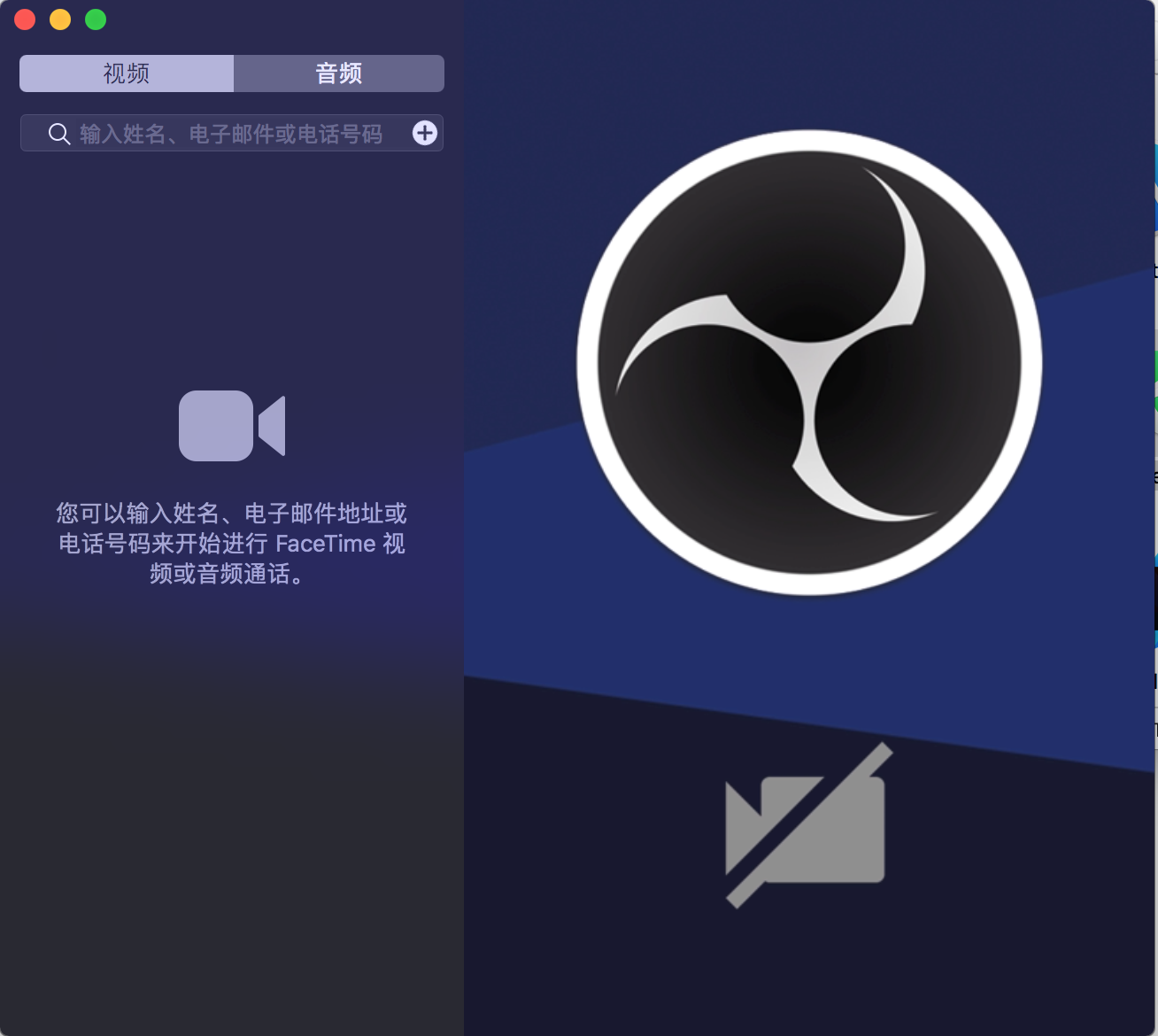 打开FaceTime也是同样的问题,只显示OBS软件图标。