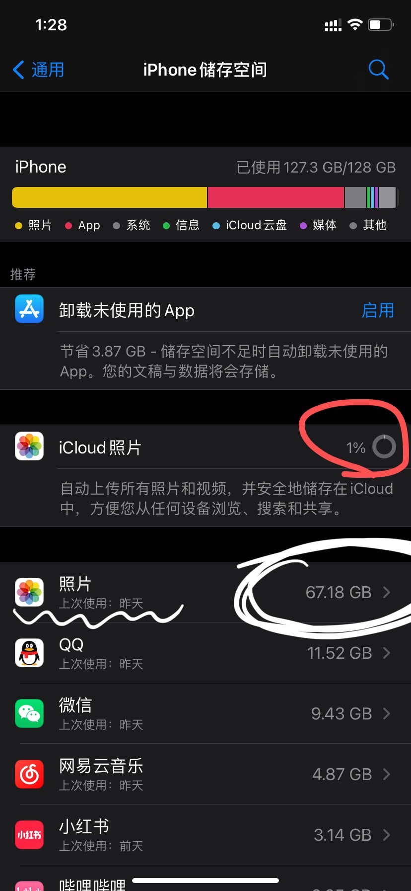 iCloud刚买的200G套餐,手机内存里显示相册占用了70G,把其他的同步关掉了只保留了相册却在相册里被告知“无法上传至iCloud”有什么解决办法吗?