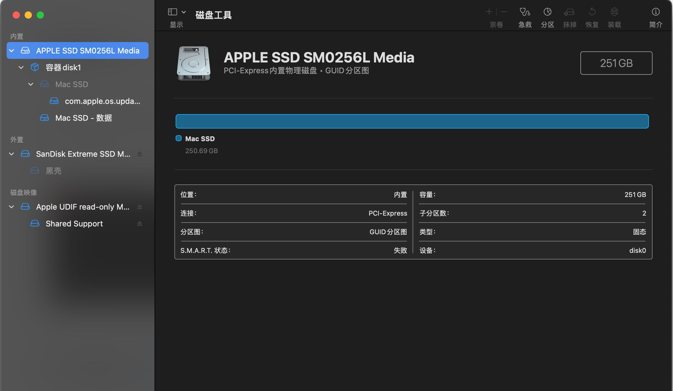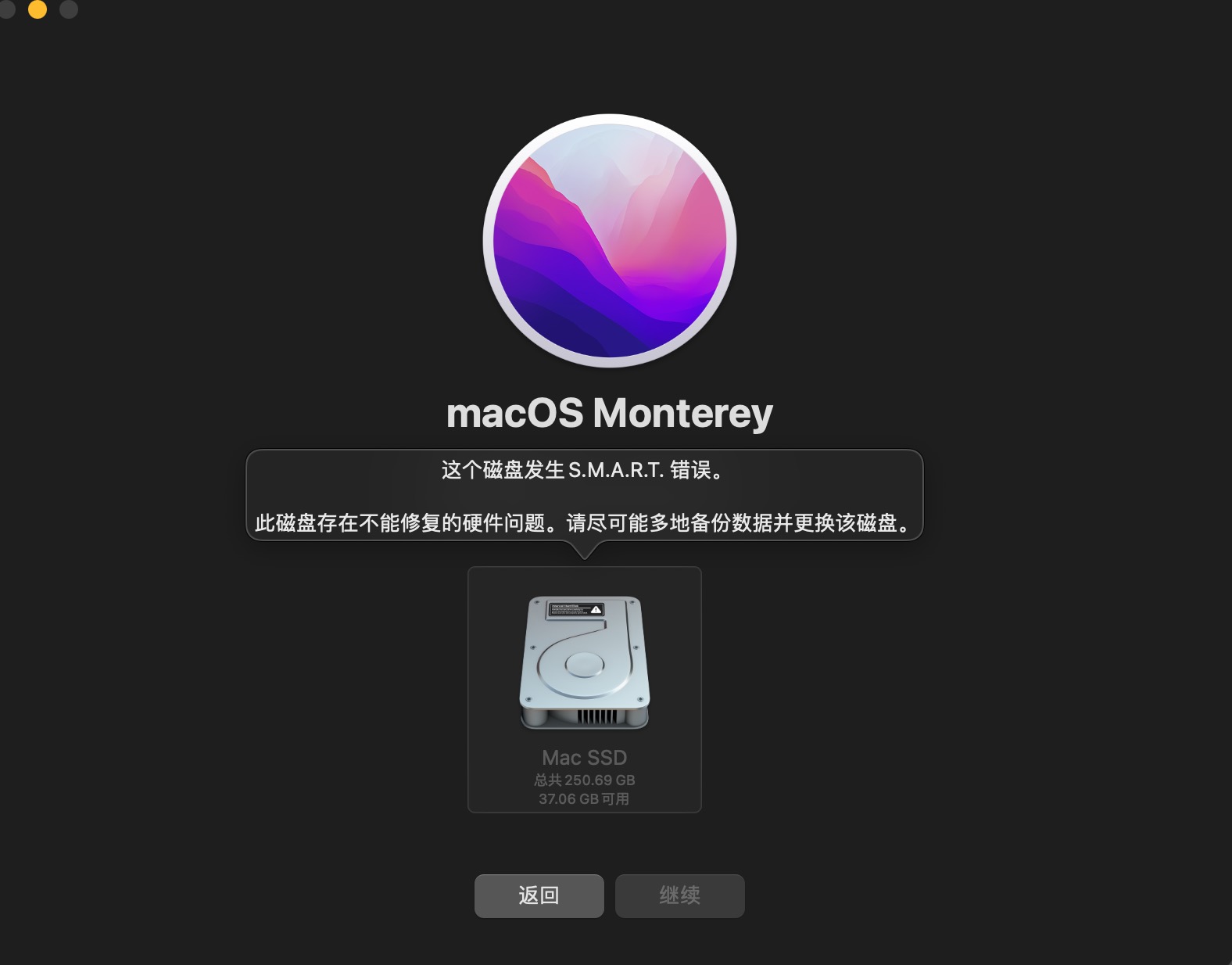 升级macOS Monterey时显示,这个磁盘发生S.M.A.R.T.错误。此磁盘存在不能修复的硬件问题。请尽可能多地备份数据并更换该磁盘。磁盘工具急救没发现错误,是硬盘快坏掉了吗?