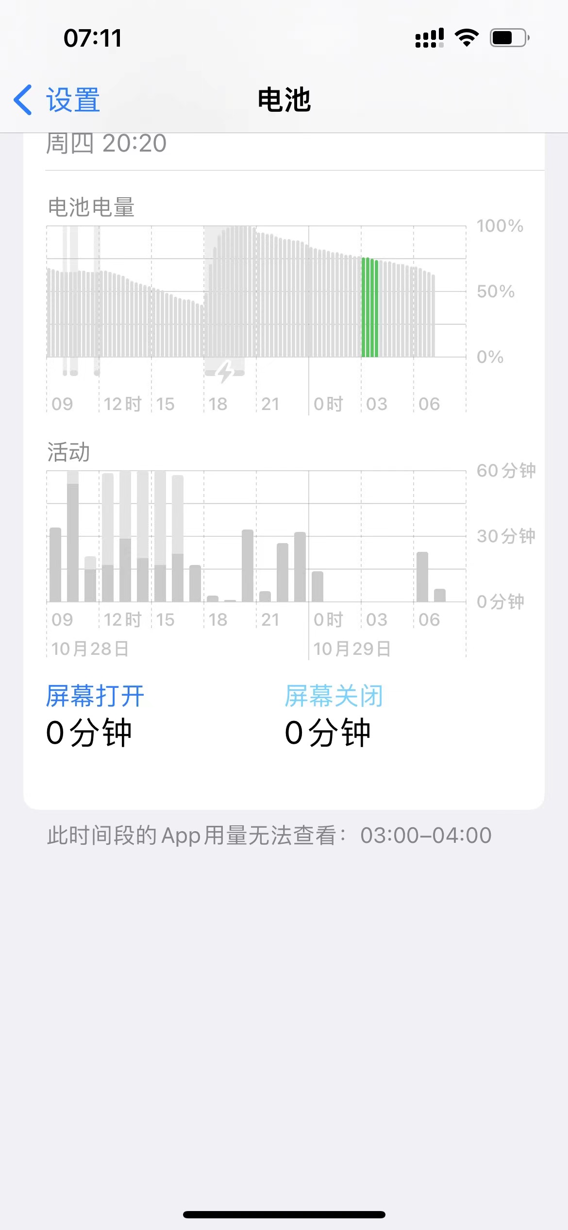 3.后台关闭所有程序刷新,通过电池监控可以看到在这个时间段里面没有APP在运行。(见附件图片)