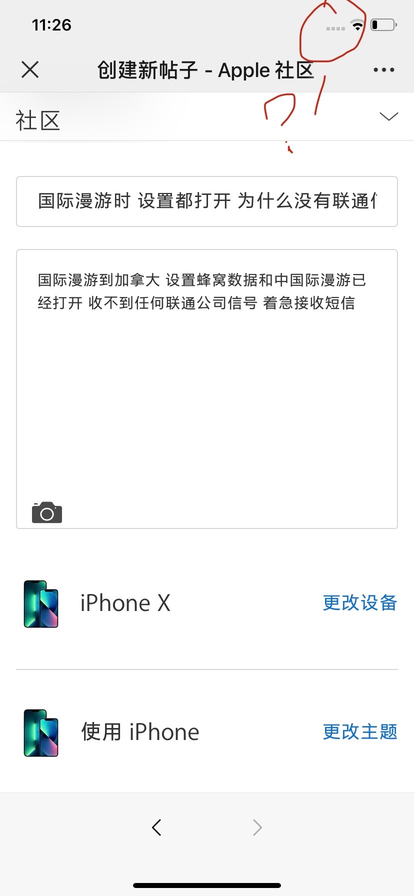 国际漫游到加拿大 设置蜂窝数据和中国际漫游已经打开 收不到任何联通公司信号 着急接收短信