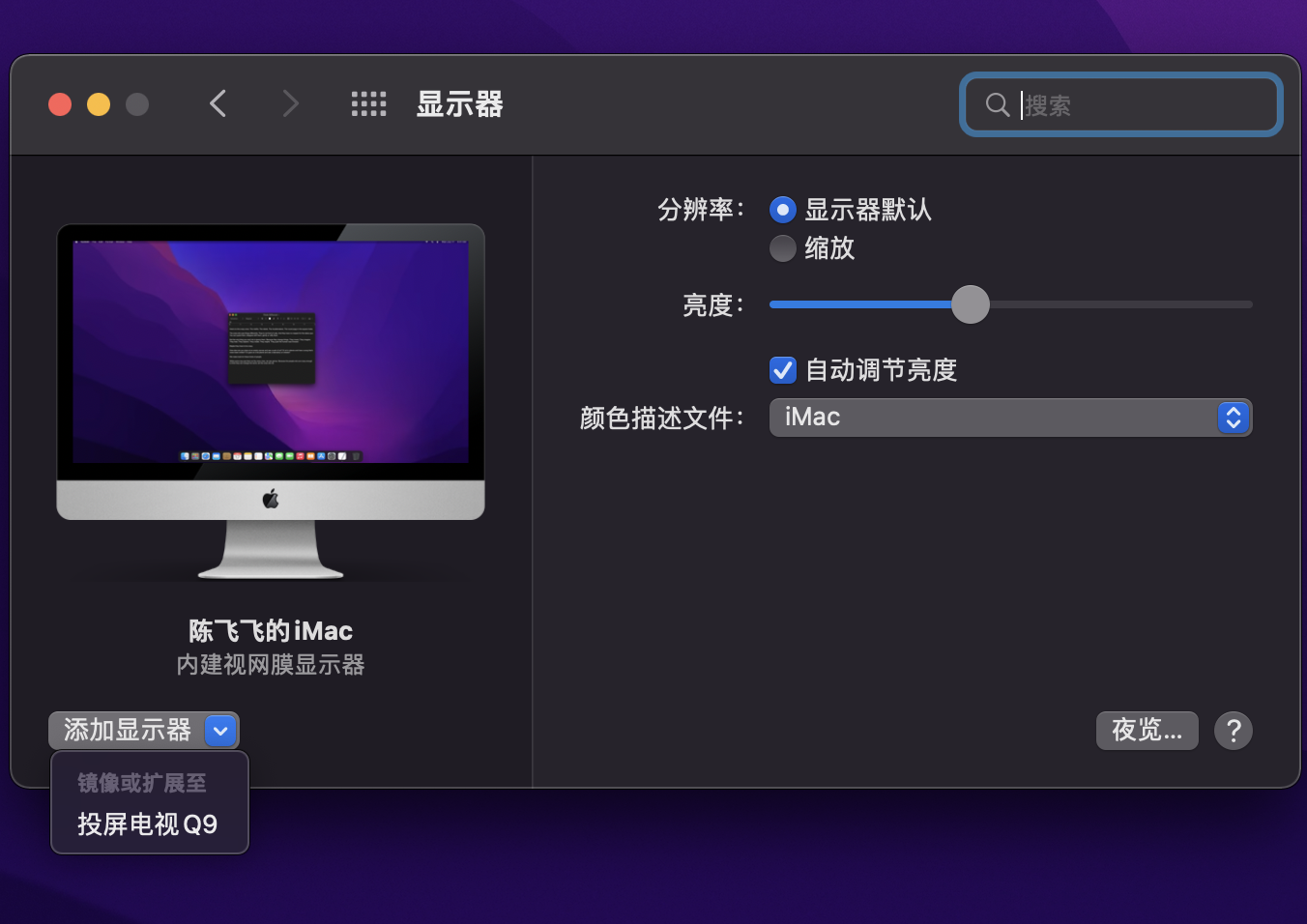 macOS Monterey系统是支持手机,平板投影到mac上的。我尝试利用手机的“屏幕镜像”,有mac。平板的“屏幕镜像”不出现mac。在确认登陆同一ID和同一个Wi-Fi下,advisor建议我退出mac的ID后重新登陆。基于上述存在的事实,我提出了问题可能出在平板的ID上。于是我首先重新登陆了mac的ID,问题依然存在,接着我重新登录了平板的ID,“屏幕镜像”中也出现了mac选项。打开mac的显示器偏好设置,左下角也出现了“添加显示器”选项。问题成功解决。