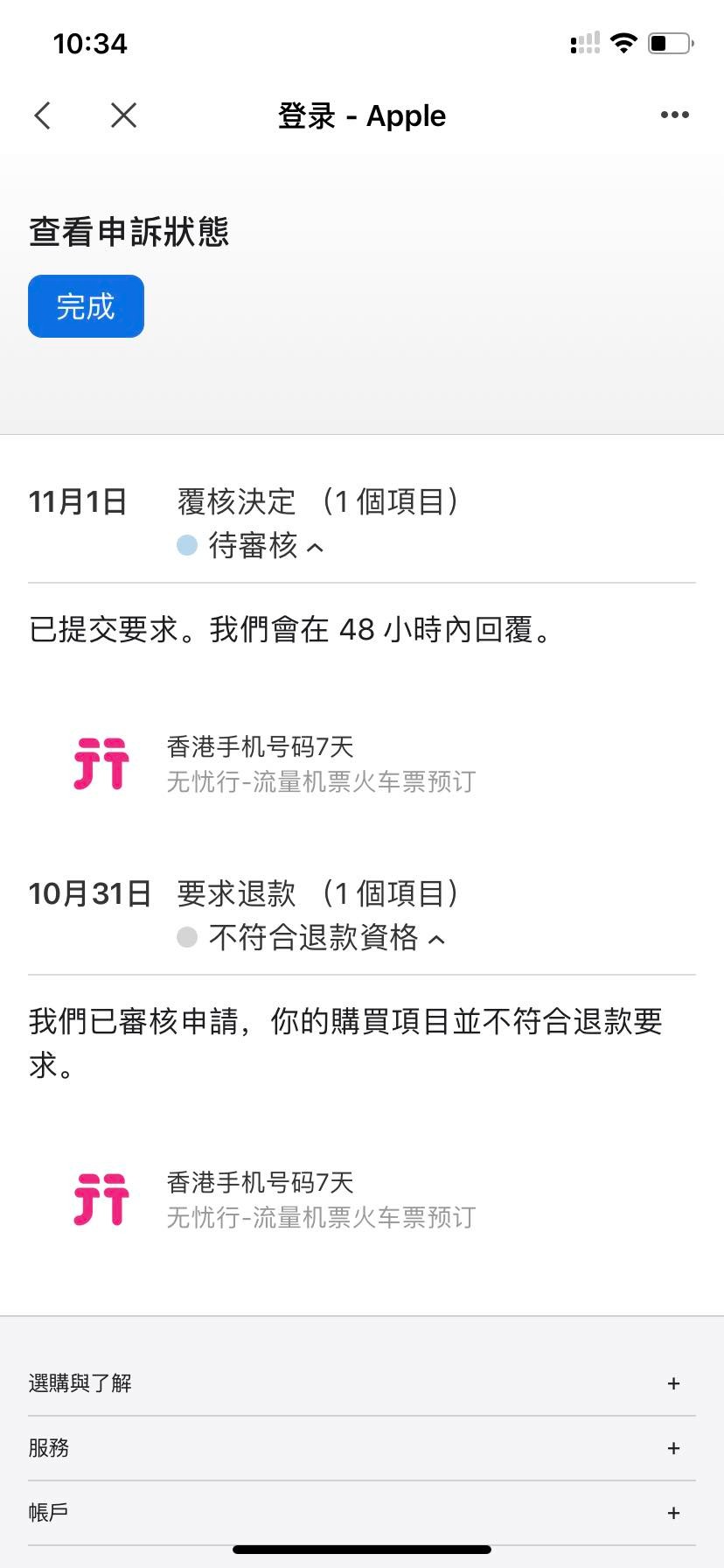 在Apple 支援中,《报告问题》申请退款但被驳回,现已申诉。
