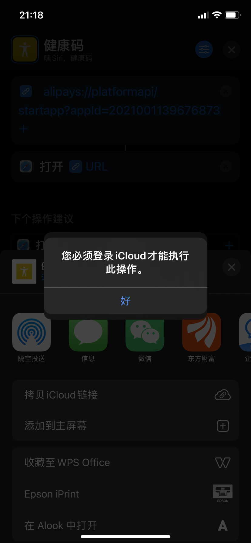 分享快捷指令提示:您必须登录icloud才能执行 此此操作。