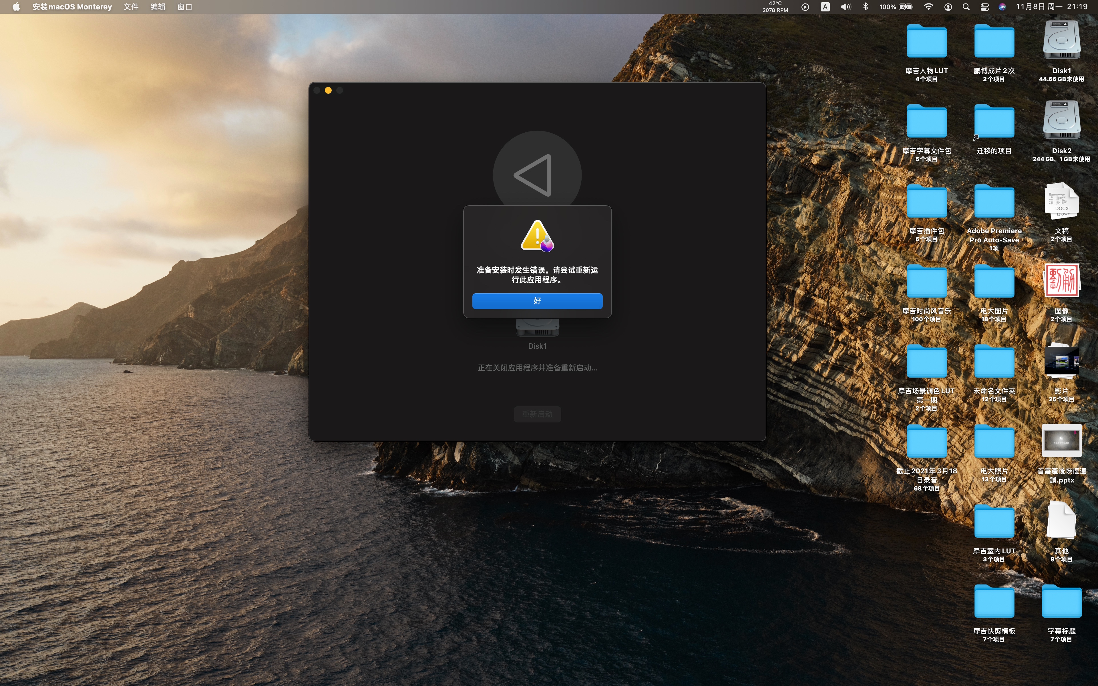 安装monterey报错“准备安装时发生错误。请尝试重新运行此应用程序”