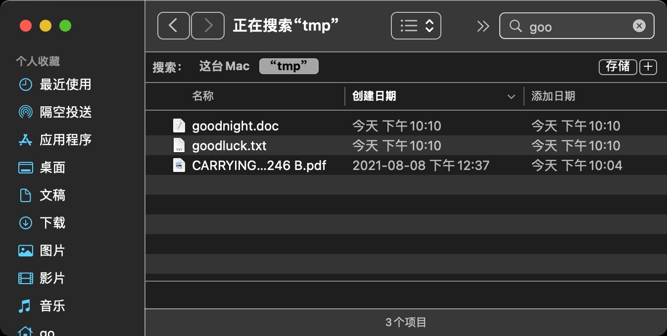 我这里尝试建了个 /Users/用户/Downloads/tmp,把文件移动到里面和新建的文件都可以找到