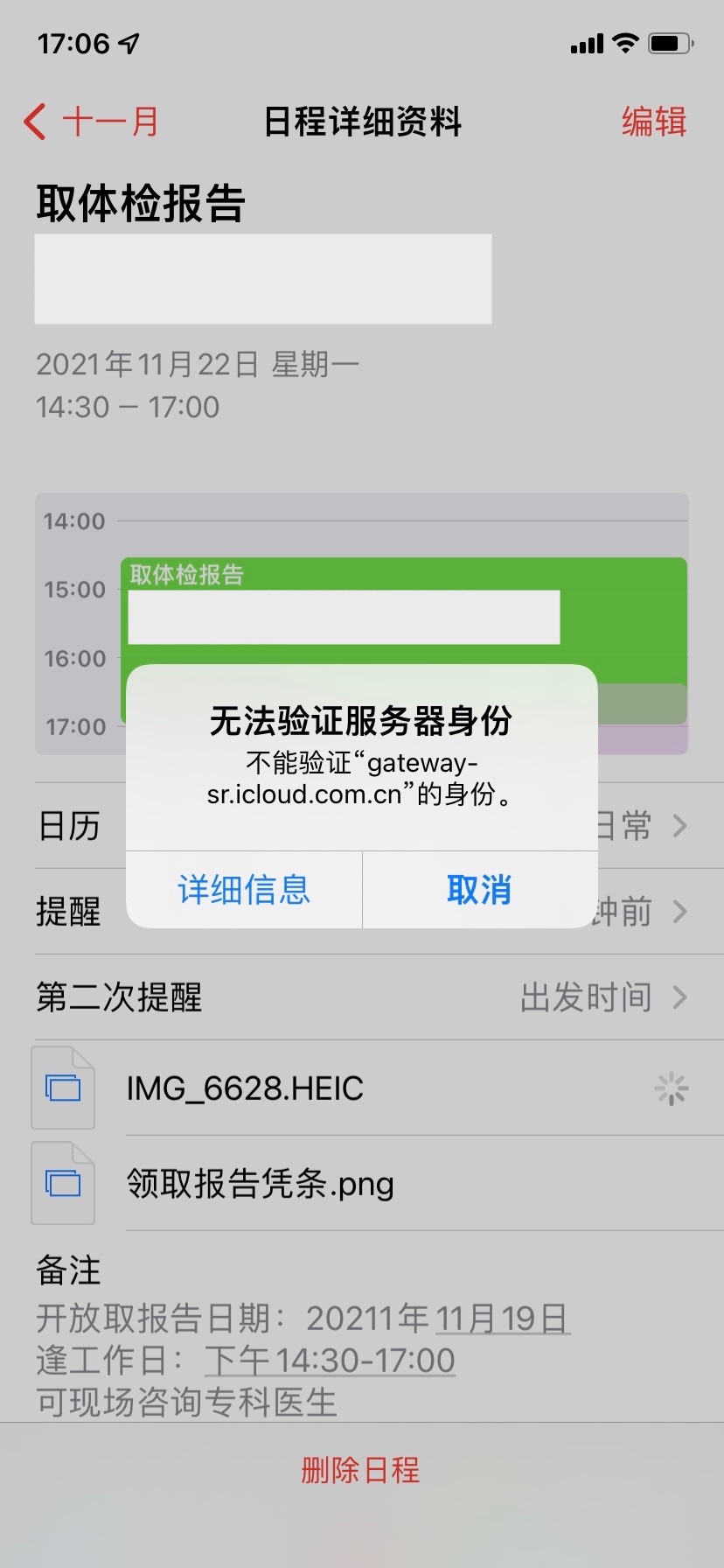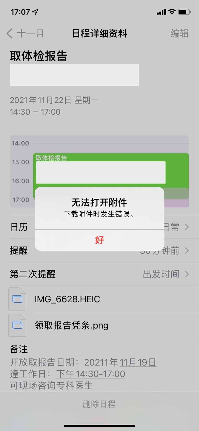 一直存在的问题:日历行程里添加的文件和图片在另一台设备中无法查看