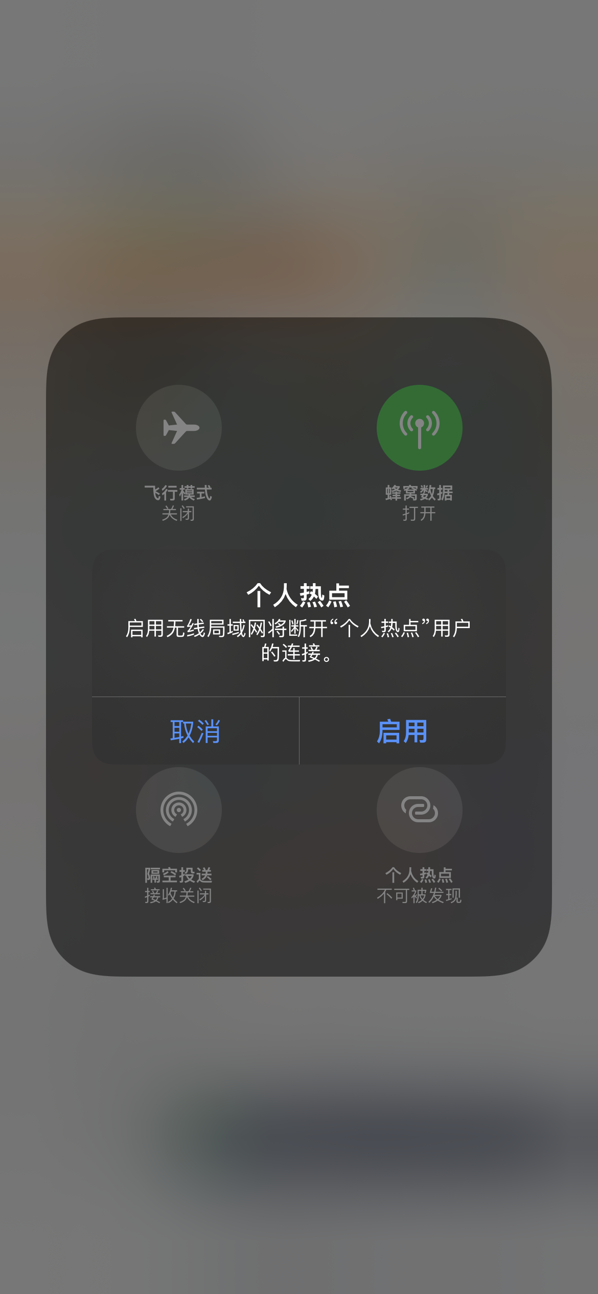 个人热点关闭异常,希望能改进一下,本来更新iOS15.1之后,确实带给我很多惊喜,但是刚刚好像突然发现一个关于个人热点的bug!"我控制台是已经将我的个人热点关闭了的,但是当我去打开无线局域网的时候,却给我这个提示!为什么??!请看下图