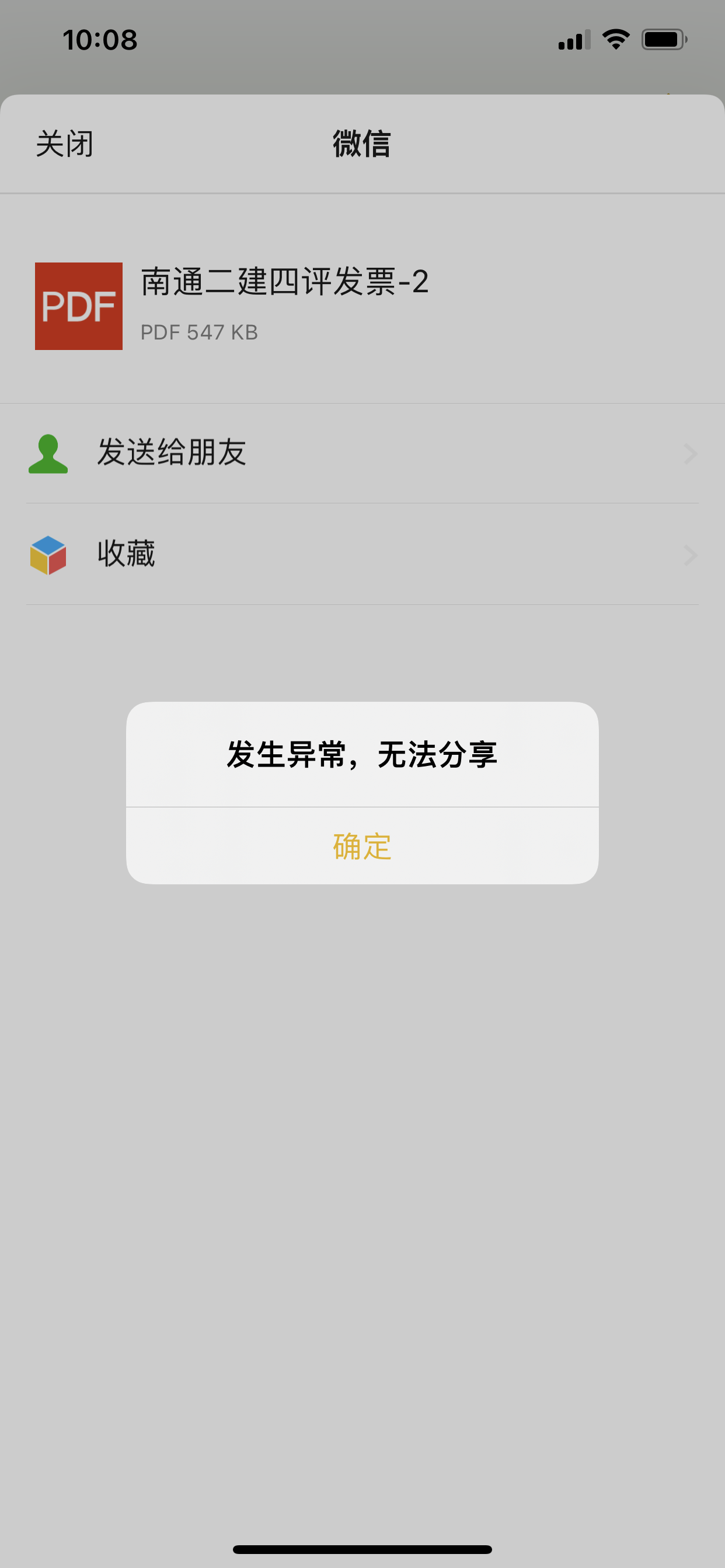 我在备忘录中扫描了文档,但是不知道为什么不能共享到微信,显示发生异常,不能共享,这是为什么?
