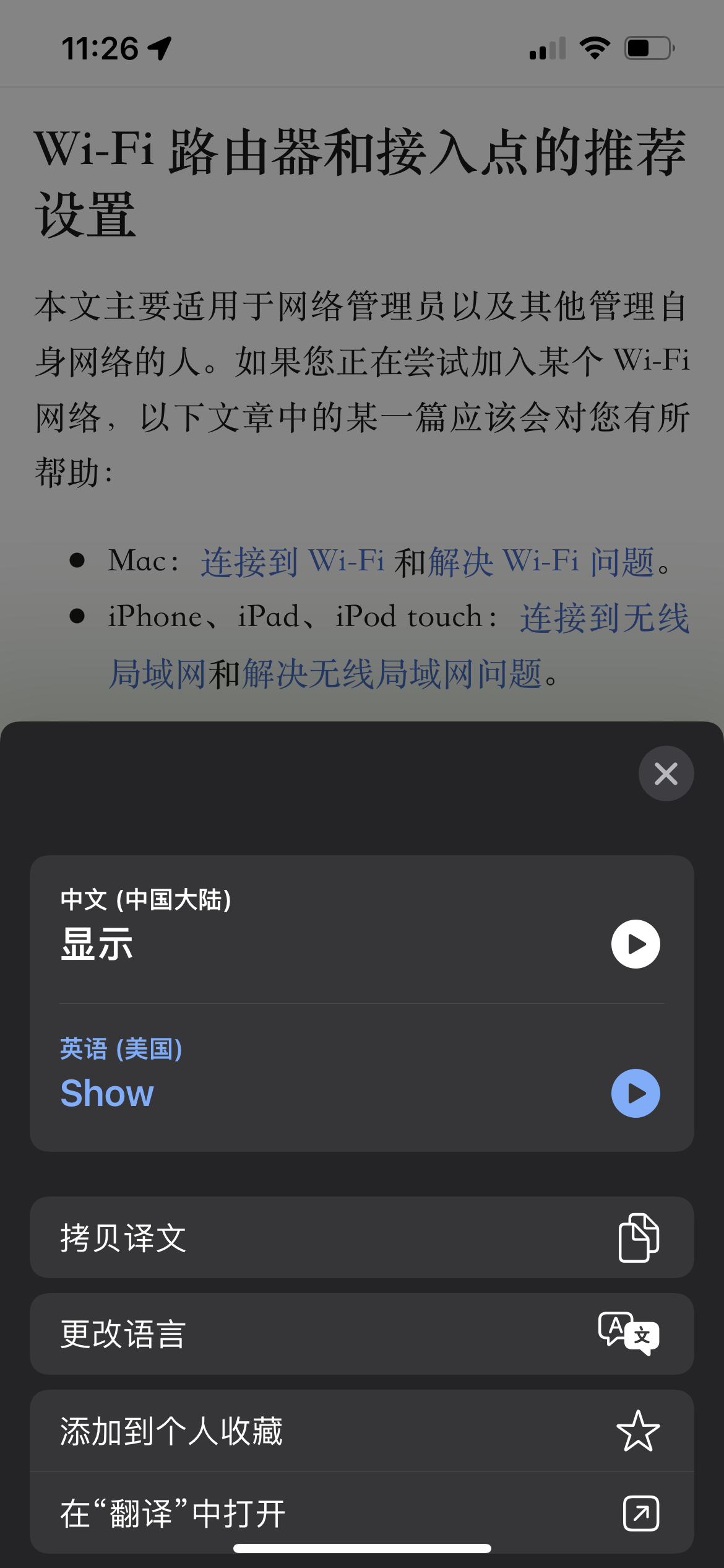 Iphone13在网页翻译文字后无法按朗读