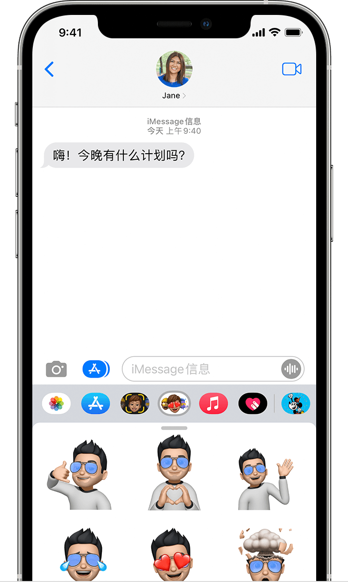 *#图像和 Apple Pay 并非在所有国家或地区都能使用。如果您发现“#图像”中的内容存在问题或对它感到担忧,您可以报告相关内容或移除“#图像”App。您需要拥有兼容的 iPhone 或 iPad 才能使用拟我表情。