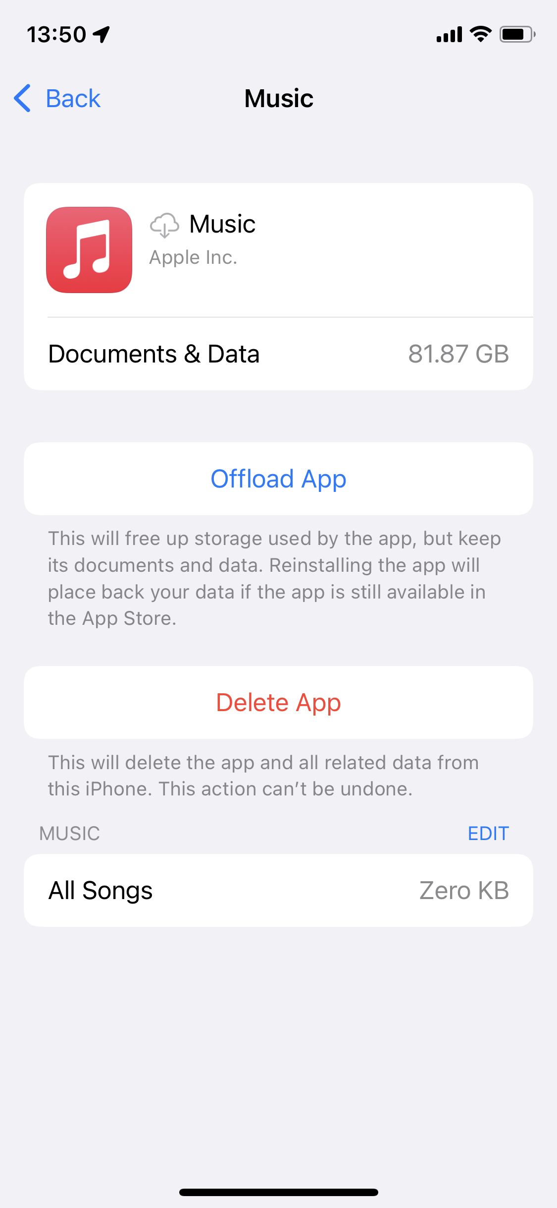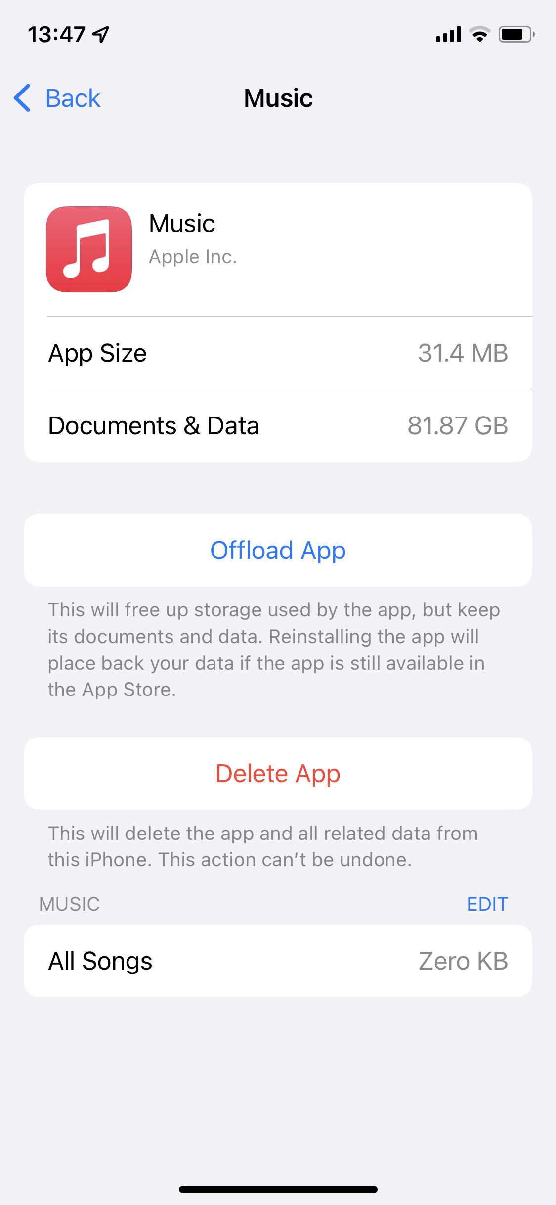 今天手机显示容量快满了,我就检察了一下,发现我压根没在apple music上下载音乐却占了我81个g……而且删除apple music软件之后那些data也没有被清除,还是占了那么多空间
