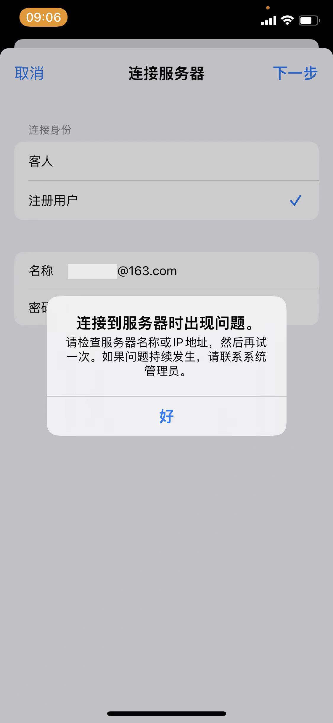连接到服务器时出现问题