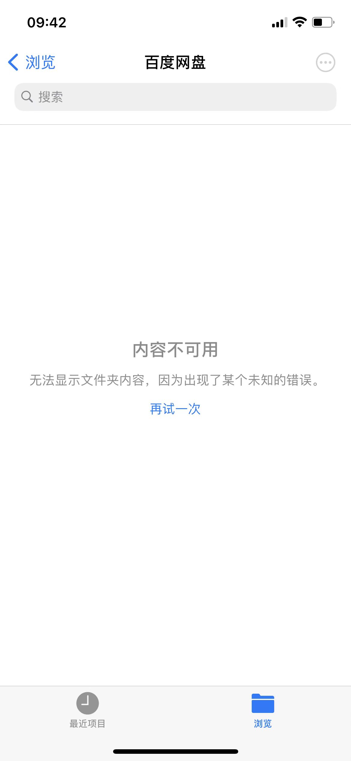 iPhone12的文件管理查看百度网盘的时候显示无法查看