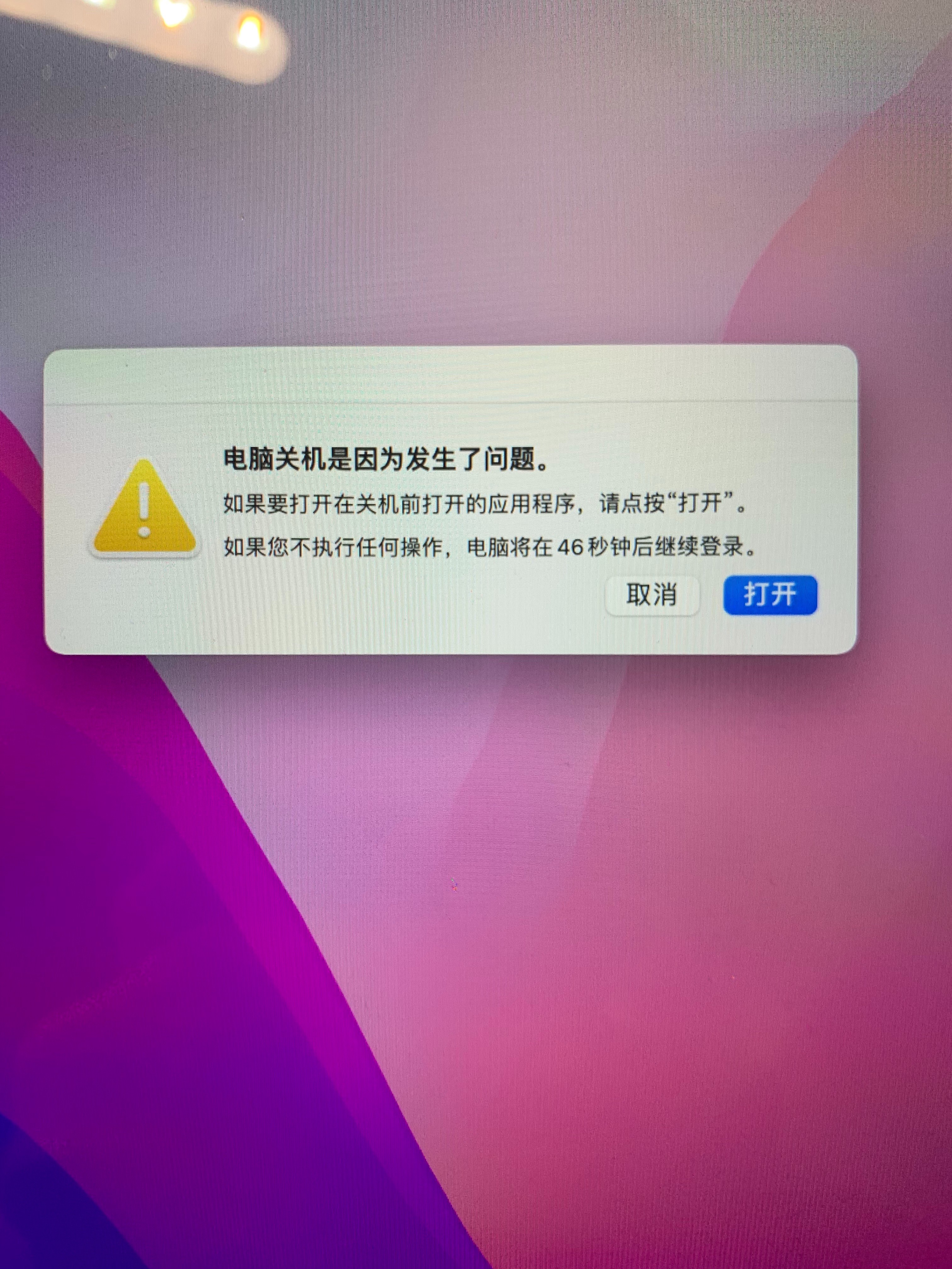 我的MacBook Pro,每次开机都会出现,电脑关机是因为发生了问题这个对话框。