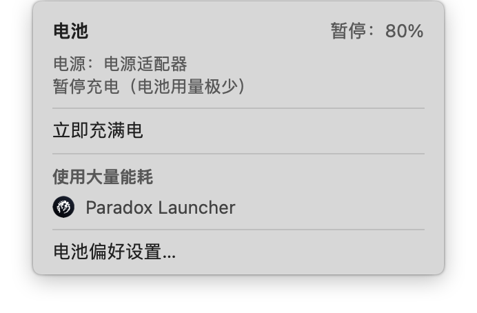 目前,如果您在 macOS Big Sur 或更高版本中使用了优化的电池充电功能,则在 Mac 连接到电源后,您会看到更多信息,例如充电是否已暂停或电池将在何时充满电。如果充电已暂停,而您需要尽快为 Mac 充满电,请点按“立即充满电”。