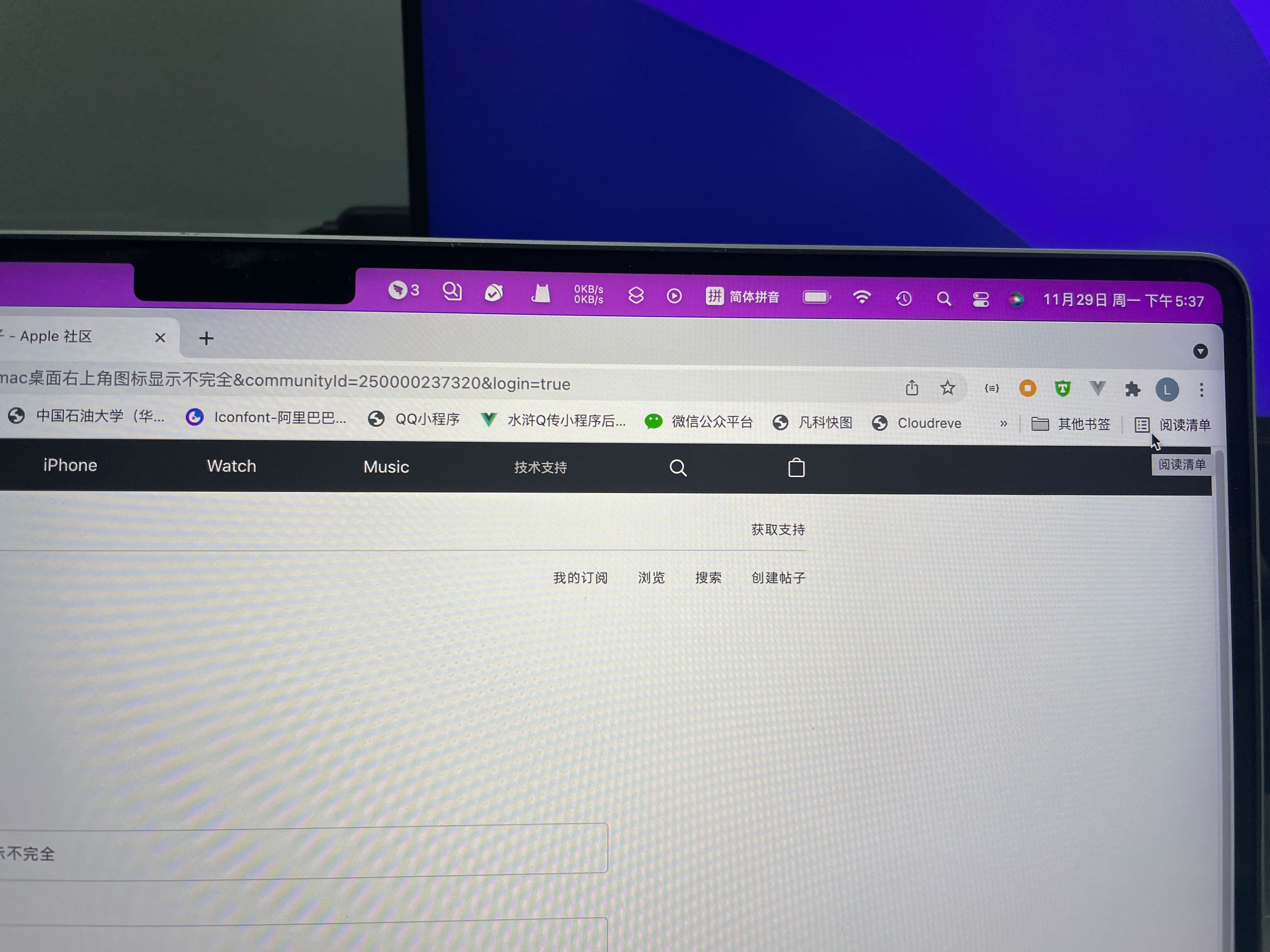 2021款新macbook上,mac桌面右上角图标显示不完全如何解决?