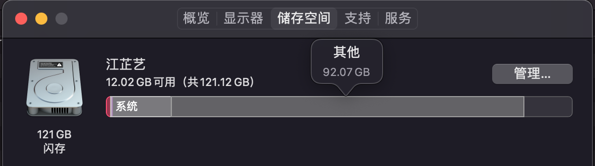 这是我现在内存的占比。一共才121GB,占了92GB太离谱了!但是我又不清楚如何清理。。