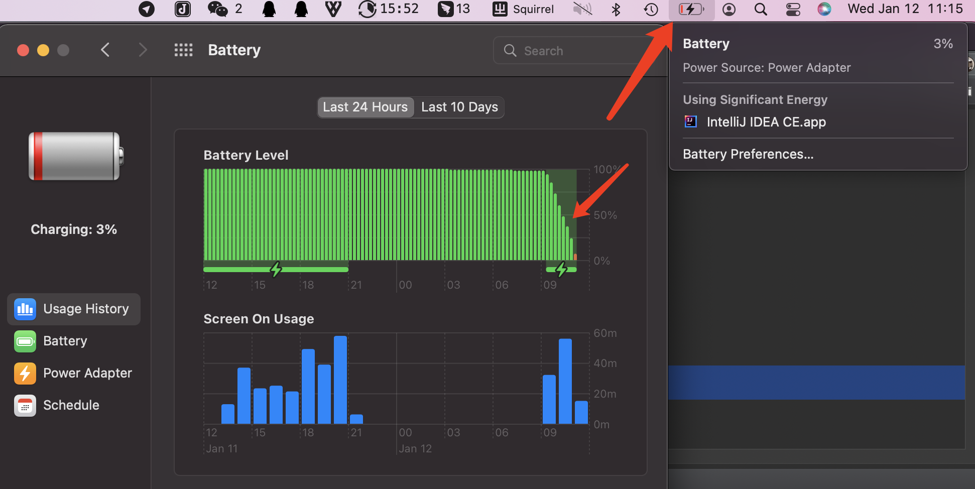 之前一次的截图(插电状态下还在耗电,而且非常快):(2022-01-04)