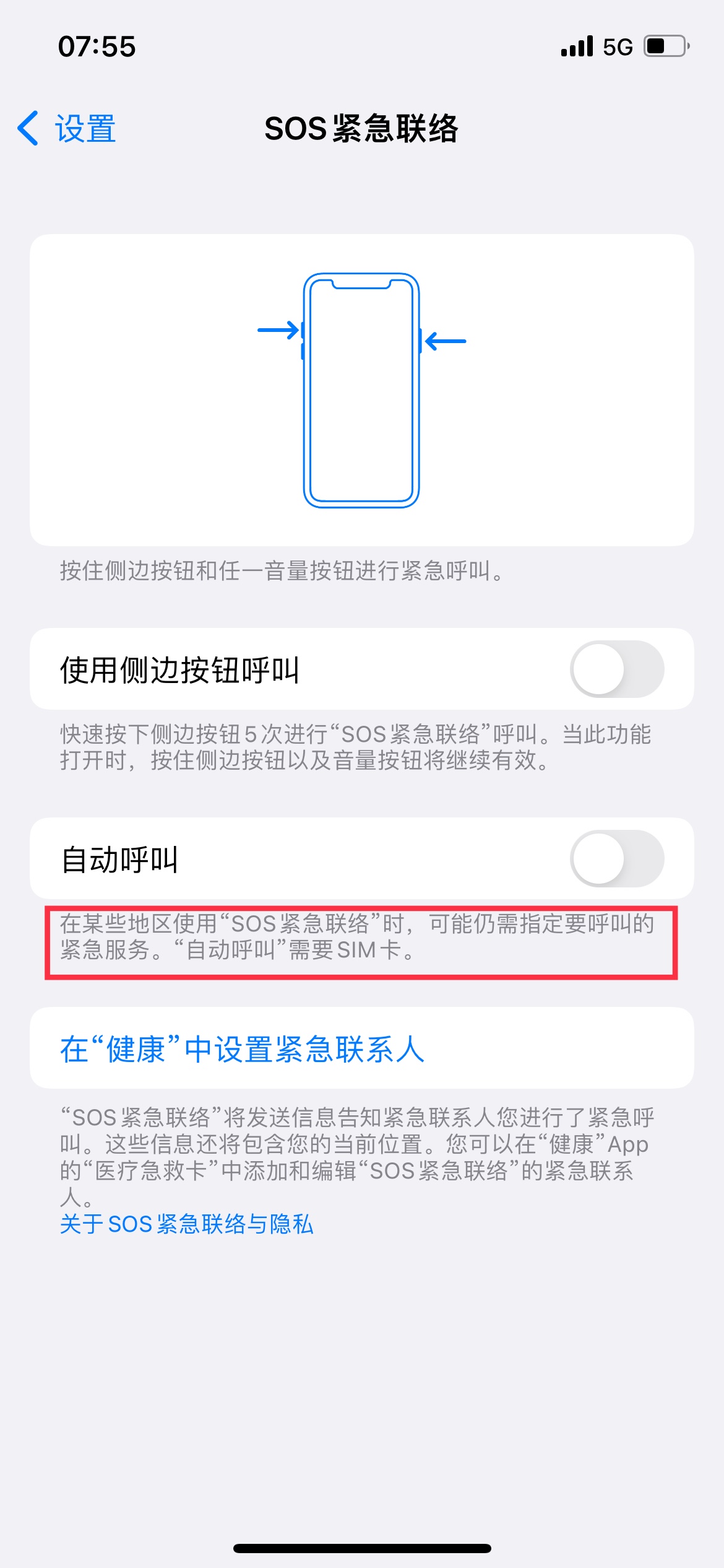 正如该选项下方的说明:在某些地区使用“SOS 紧急联络”时,可能仍需指定要呼叫的紧急服务。