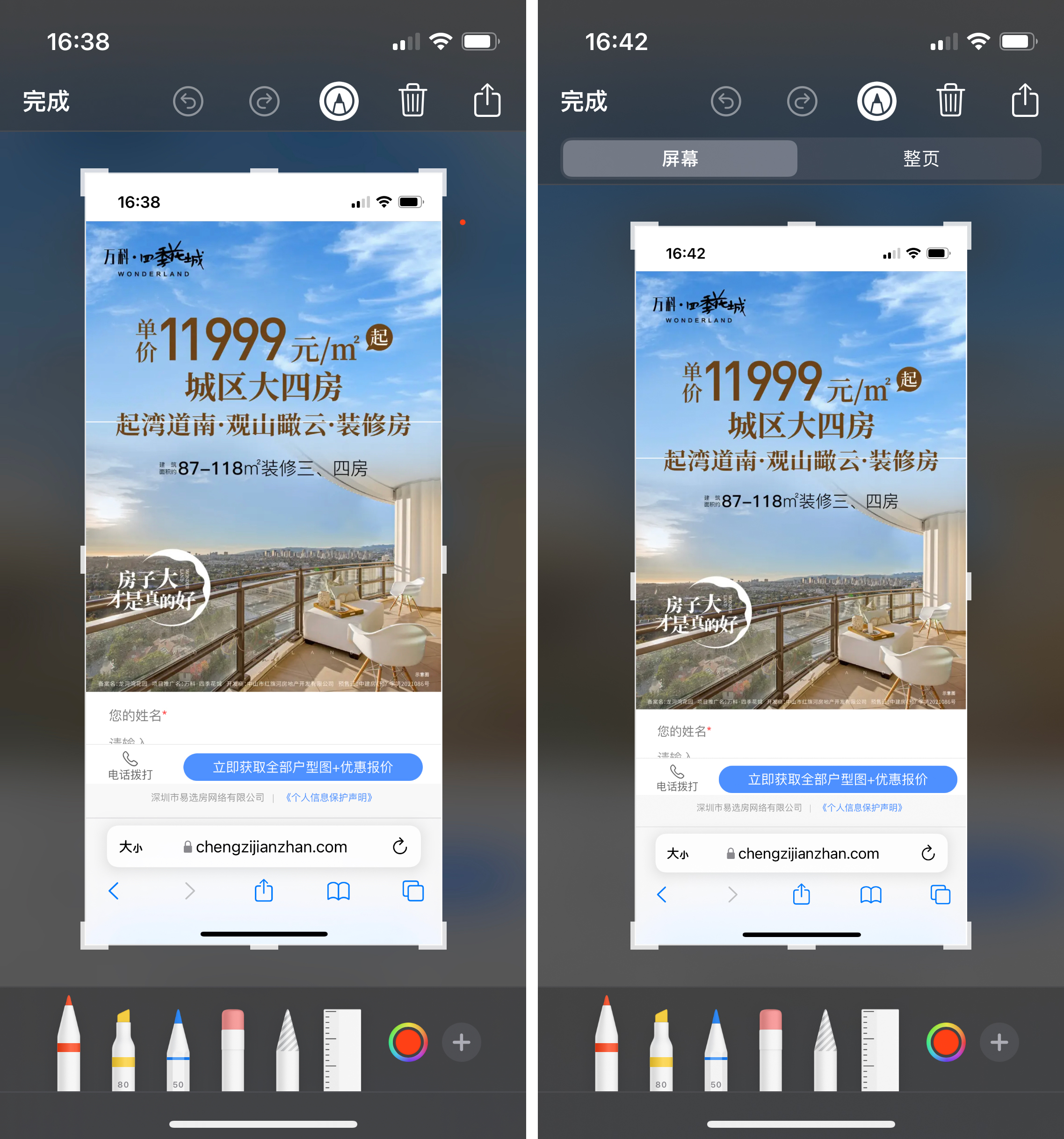 在Safari浏览器截图,点开左下角的小图没有整页