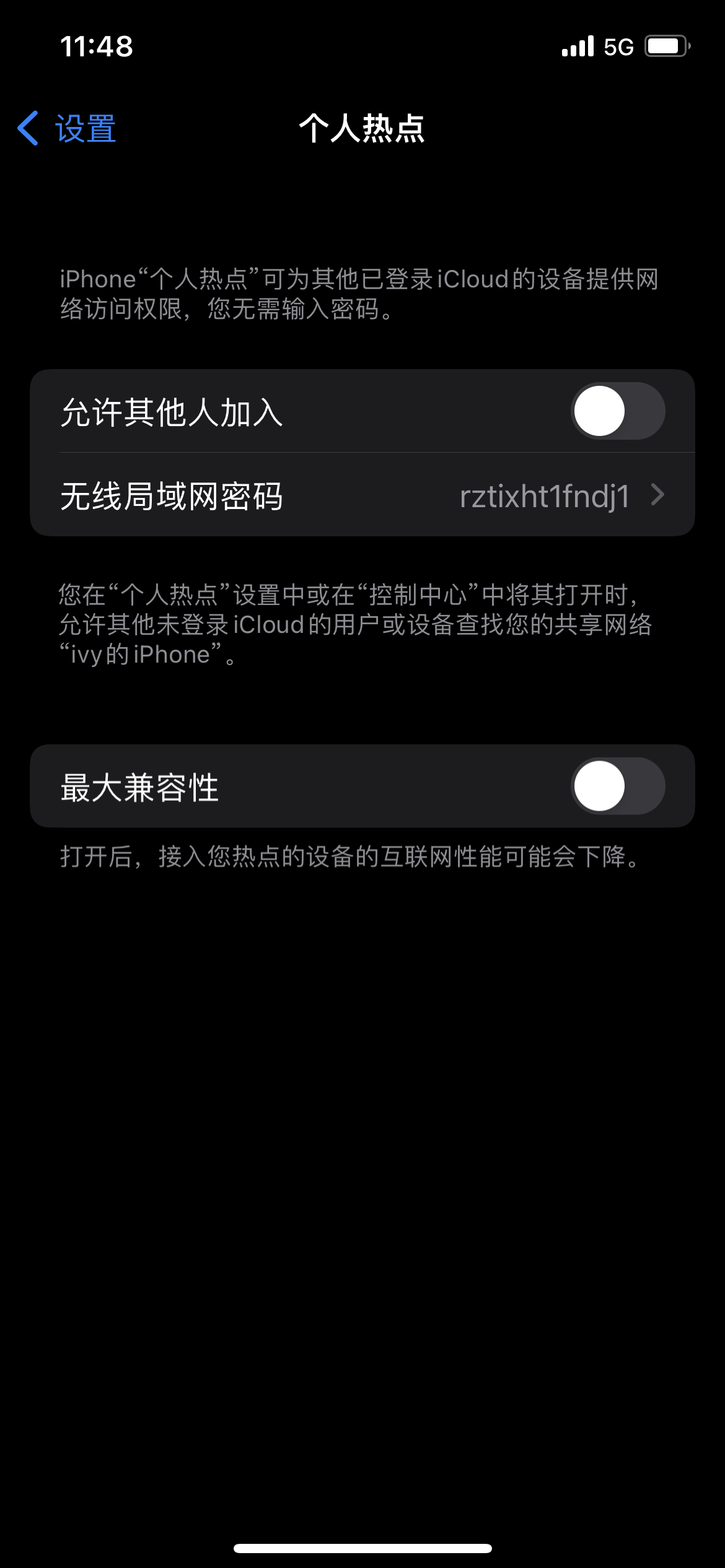 进入设置,强制关闭个人热点后从控制中心打开无线局域网依然会有上述提示