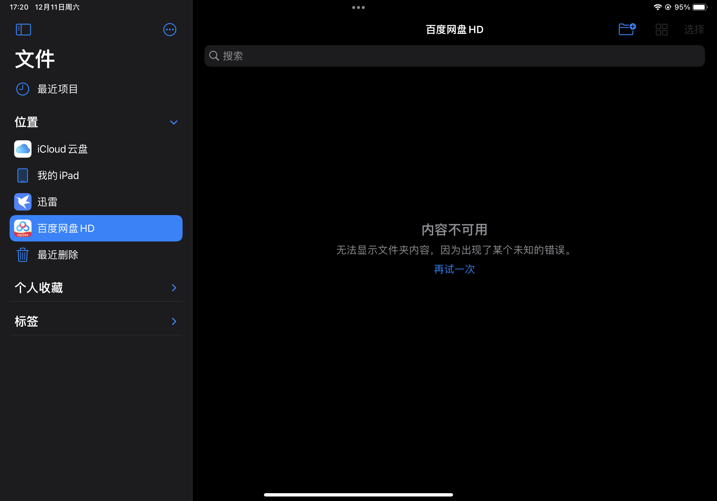 百度云盘HD 文件 内容不可用 无法显示文件夹内容