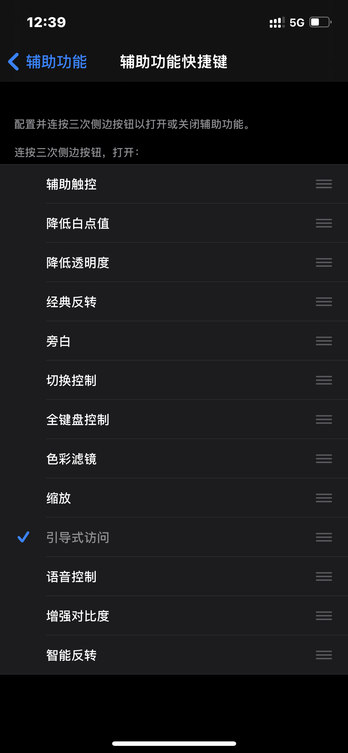 4. 再次返回“辅助功能快捷键”界面,确认使用情况。