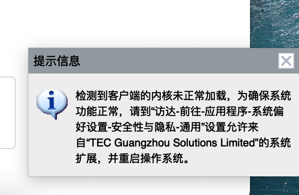 系统更新后,Mac book总是弹出“TEC Guangzhou Solutions Limited"的系统扩展,请问这个如何解决呢?
