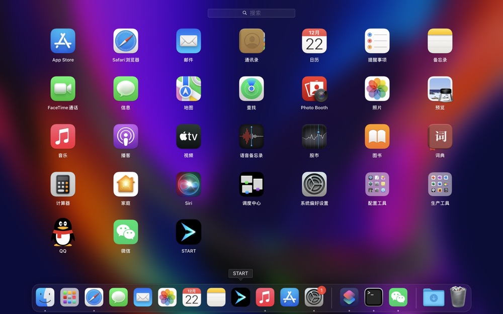 1.首先将无法删除的图标从启动台拖拽到程序坞内(如图所示应用程序名为“START”的位置即为程序坞)。