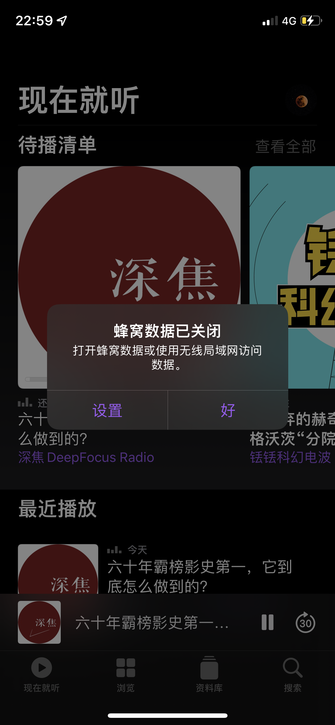 播客无法设置蜂窝网络播放