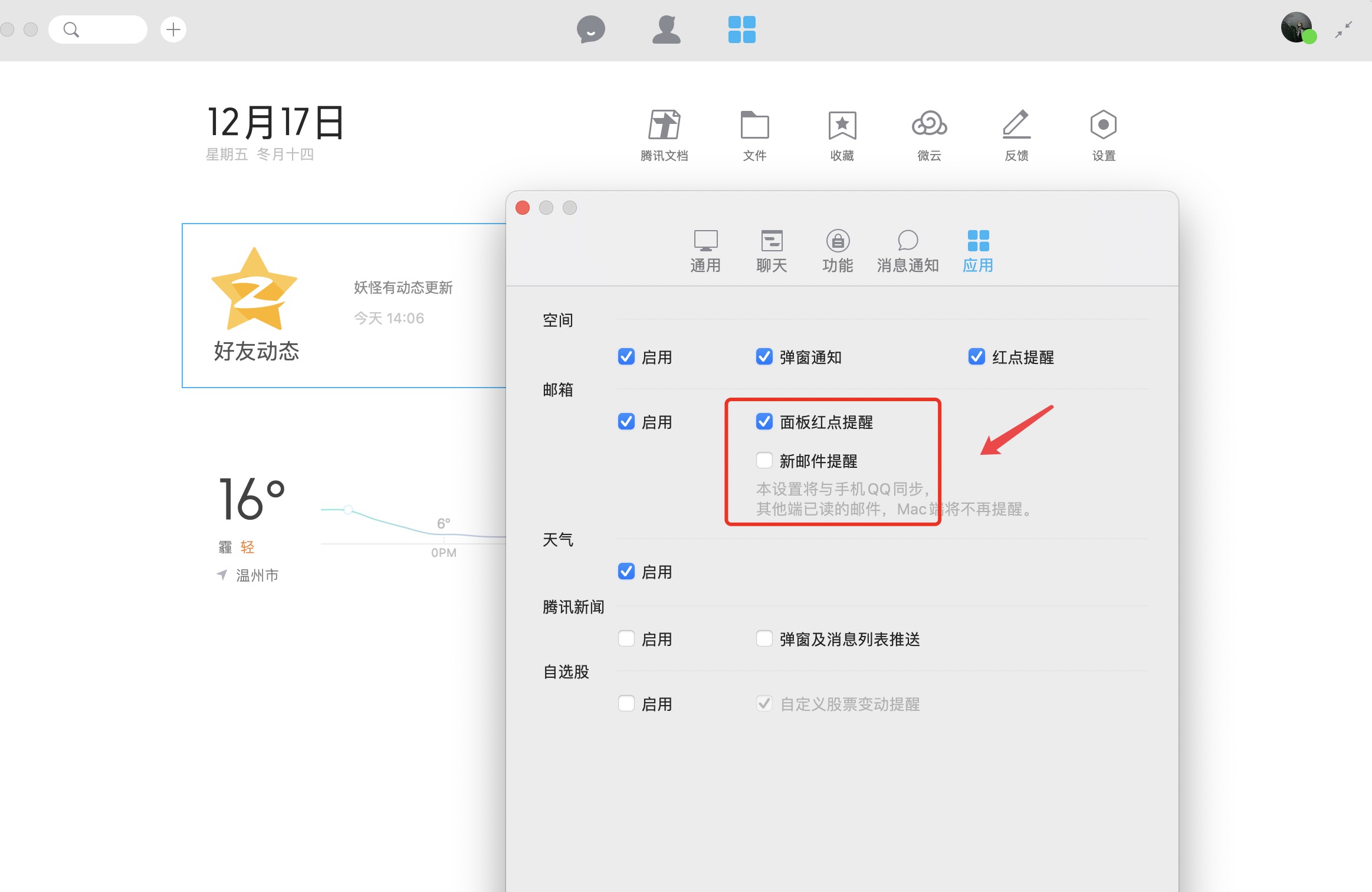 Mac的QQ设置里面无法勾选新邮件提醒
