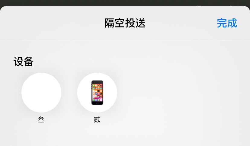 2、在设备“O”对另两部进行隔空投送,显示出来的名字都正确。如图一。