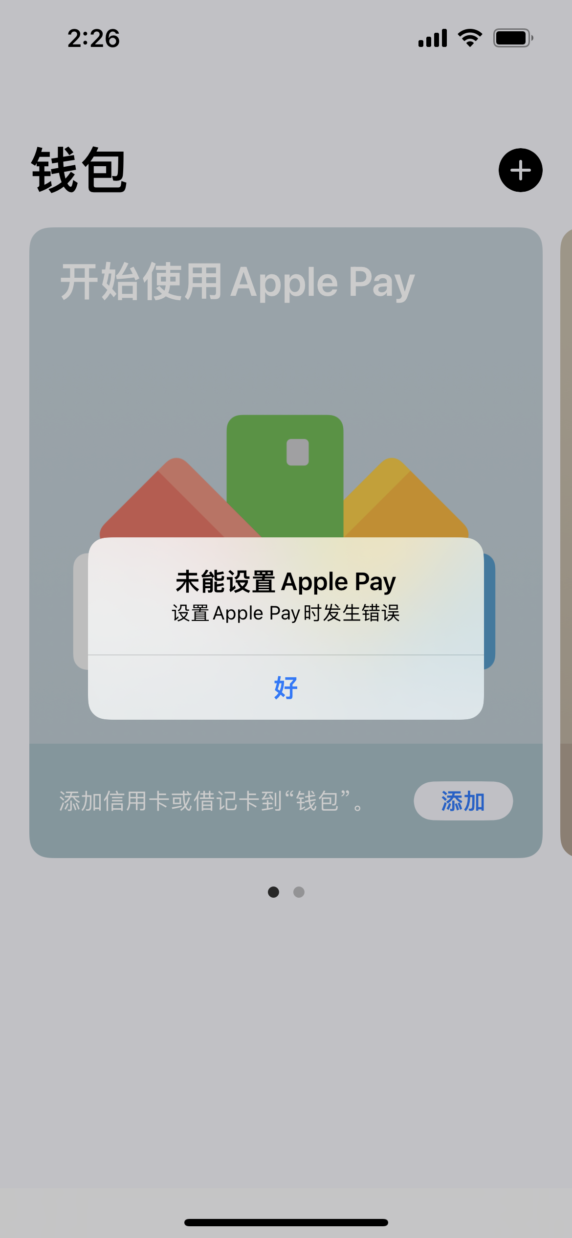 如果您无法向“钱包”中添加卡片以与 Apple Pay 搭配使用,请在“系统状态”页面上查看 Apple Pay 的状态。如果有问题,请在解决问题后再次尝试添加卡片。