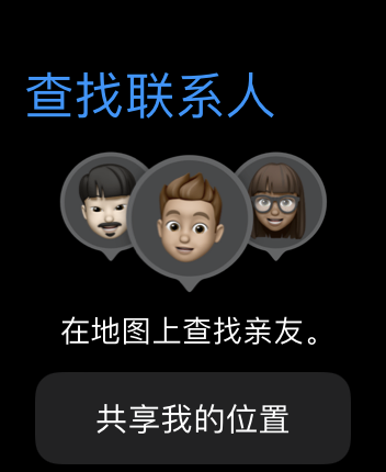 - 软件能正常打开,定位服务已经开启,iPhone上也添加了相关设备和共享联系人,但Apple Watch上无法显示相关设备和联系人的位置,一直保持在初始界面