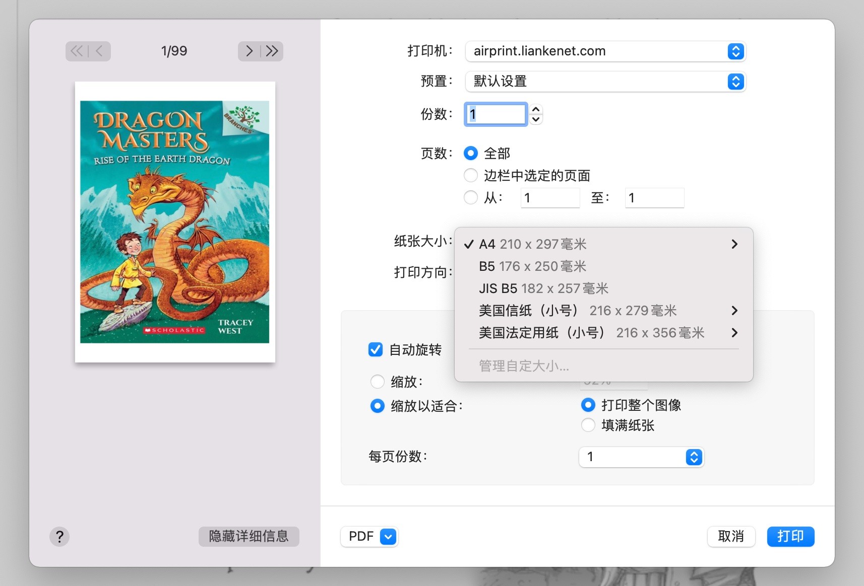 在预览等软件中打印时,都无法选择自定义的尺寸,我需要选择 A5 和 A6 二种尺寸!