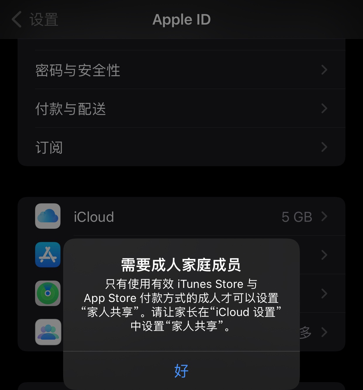如果您的孩子没有 Apple ID,您可以在设置“家人共享”时为孩子创建一个 Apple ID。