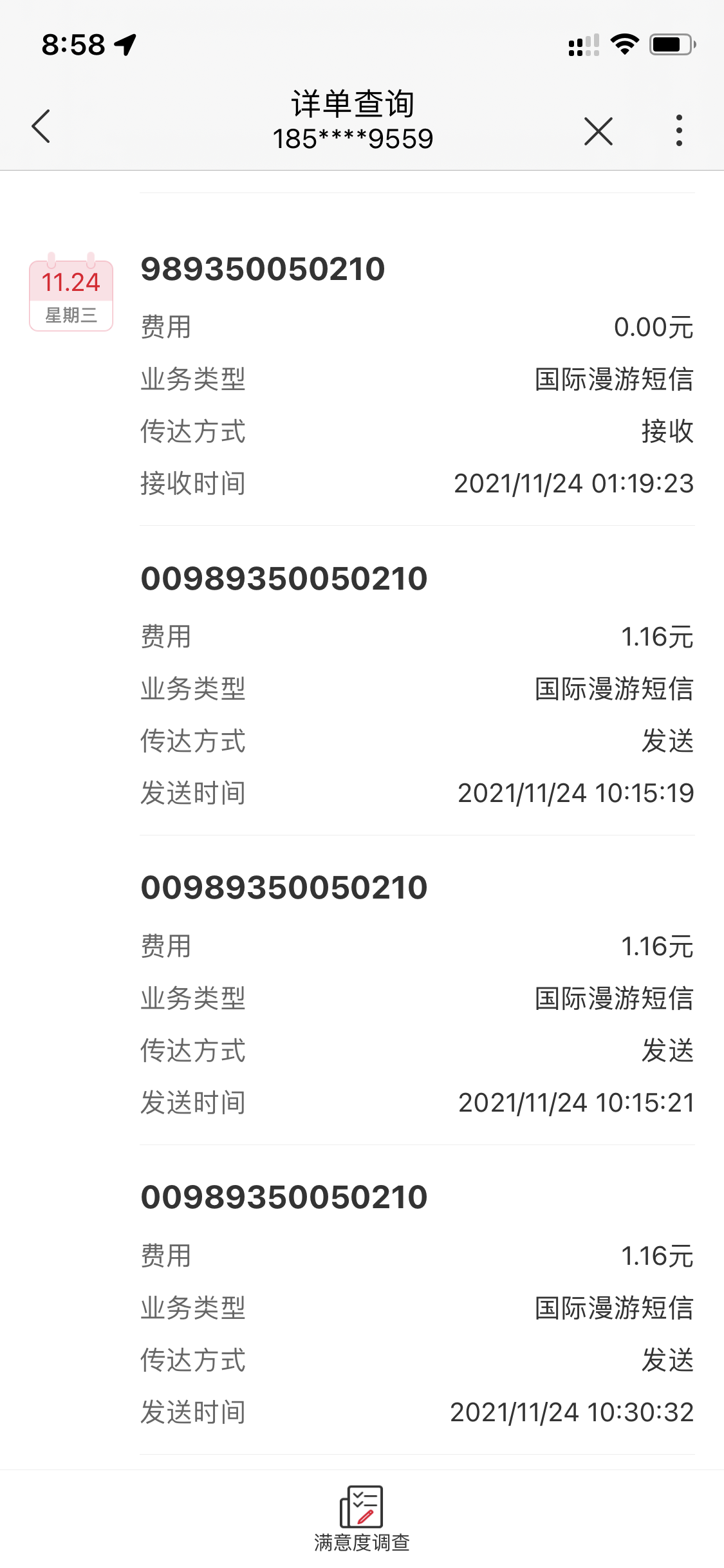 iPhone 11 pro,iOS15.1,中国联通的卡,目前在伊朗,每个月莫名其妙的手机自动向0098*********0这个号码发送短信,每条短信1.16元,每个月产生几百块大量费用,联通客服说,是苹果每次开飞行关飞行之后苹果手机会自动向服务器发送短信,而这个短信在国内是不收费的,到了国外,就成了漫游了,联通客服处理结果是每次打客服都会给我减免,或者减半费用。让我咨询苹果客服。苹果客服说不可能自动发信息、、、