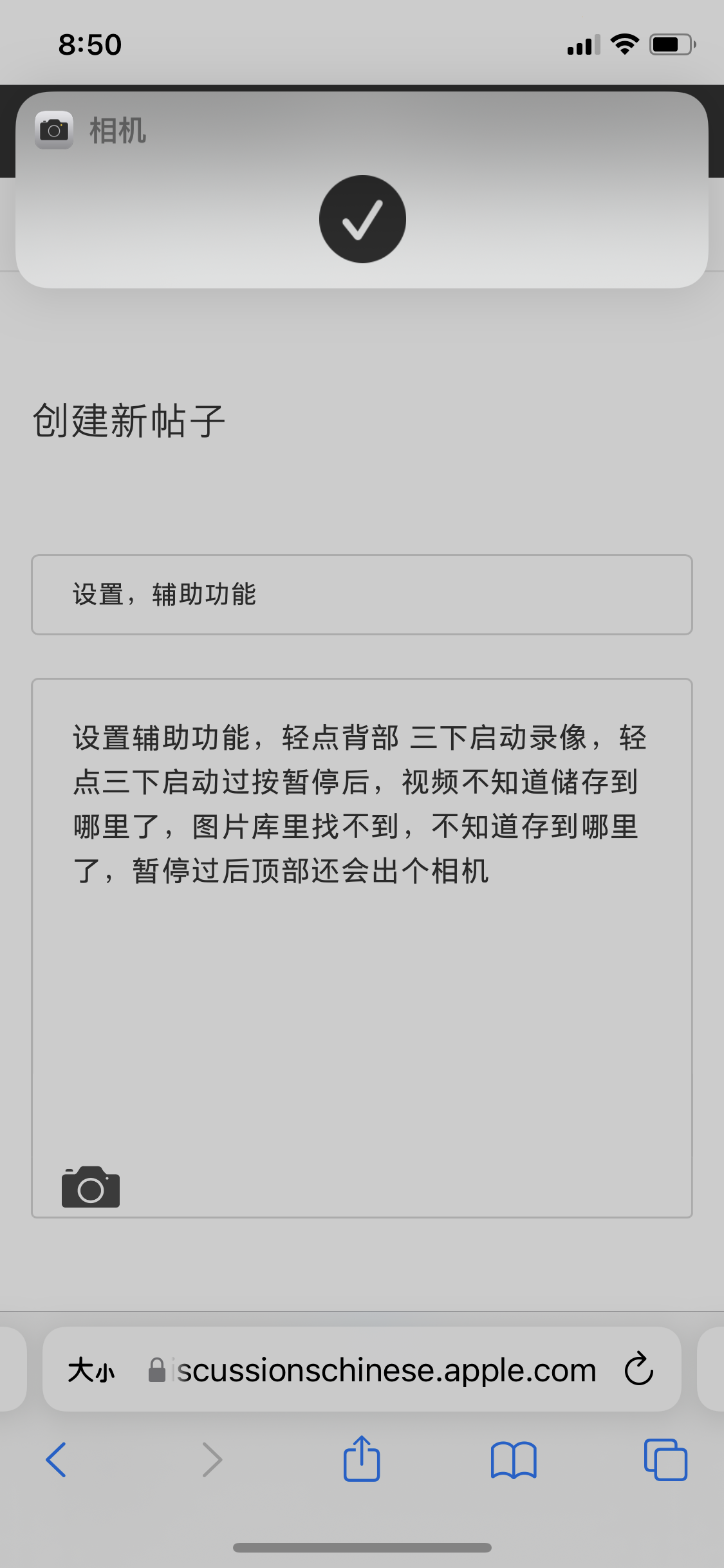 设置辅助功能,轻点背部 三下启动录像,轻点三下启动过按暂停后,视频不知道储存到哪里了,图片库里找不到,不知道存到哪里了,暂停过后顶部还会出个相机