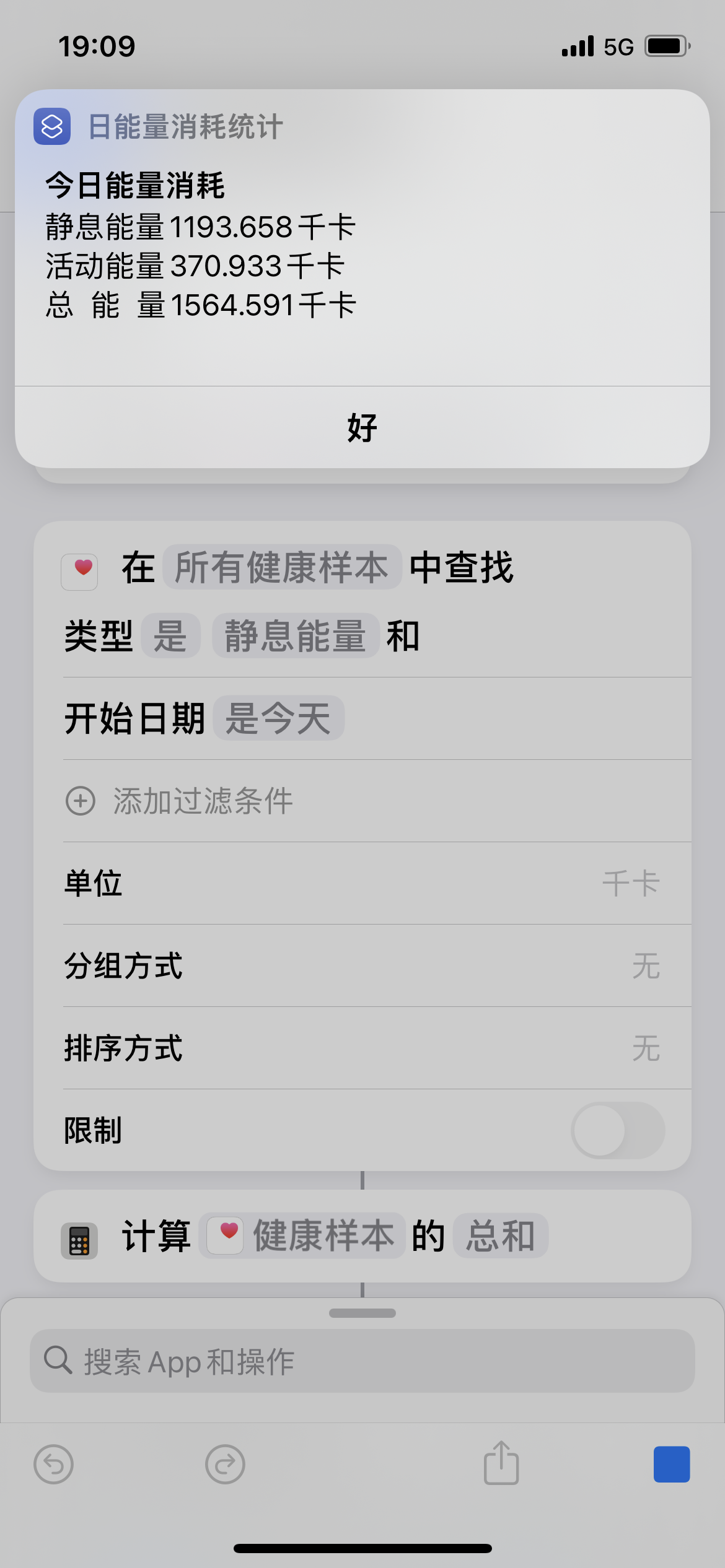 我在健康app中看到有静息热量与活动热量,想要计算这两者的和。尝试用了快捷指令但是貌似变量读取的有问题,无法读到两个数据并求和。
