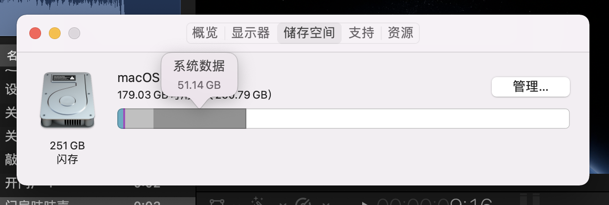 如图显示,我的这台MacBook已用空间中,有很大一部分都是“系统数据”占用的(目前约51GB),macOS占用的空间都没它大。我想问一下是什么数据占用了这么多的空间,以及我能否清理掉这些占用巨大存储空间的数据?
