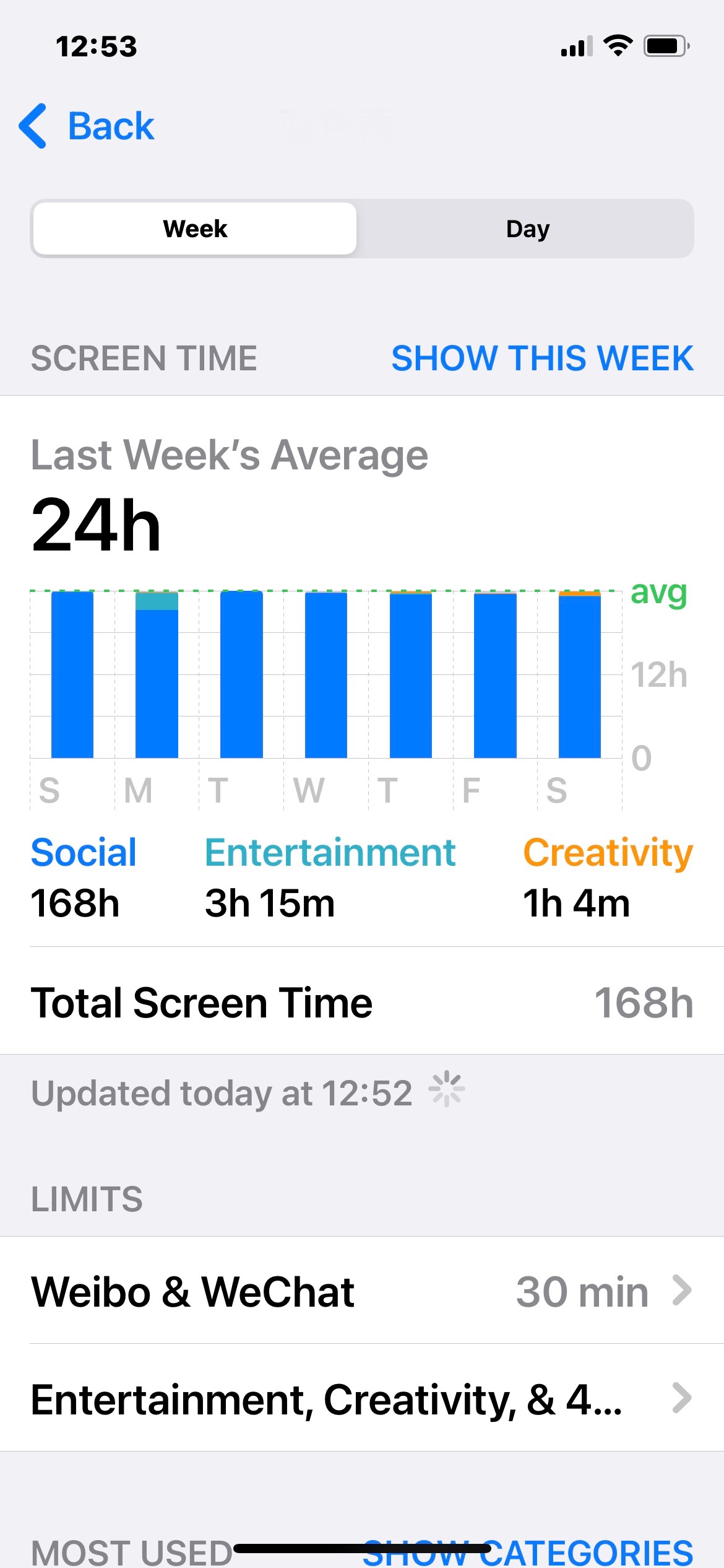 这是在这个问题出现之前的我的正常屏幕使用时间。