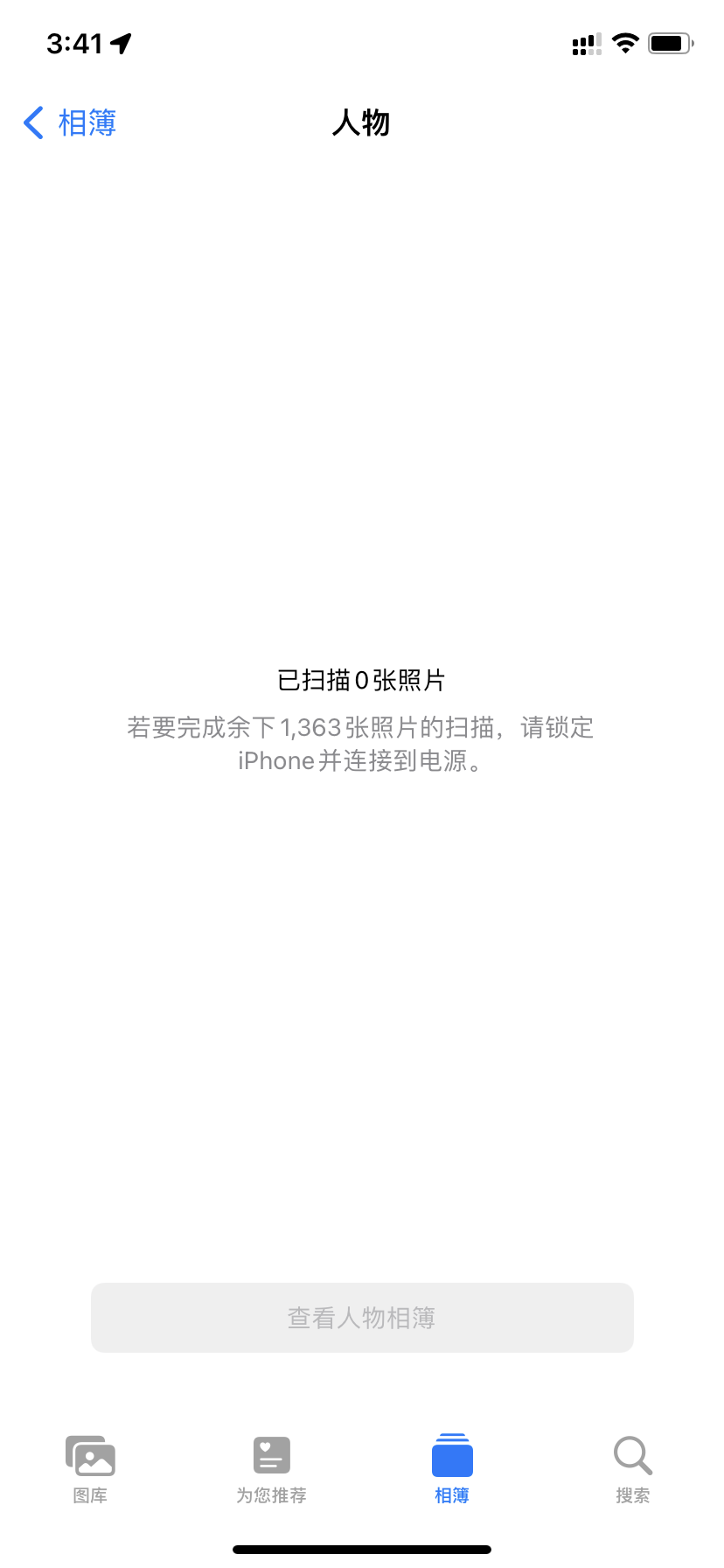 相册的人物相薄和这些都显示要扫描按照操作联网待机充电,也没有扫描啊。然后好几天了都没有扫描出来,这是什么情况呀?到底要怎么少,拜托拜托帮帮孩子吧感谢