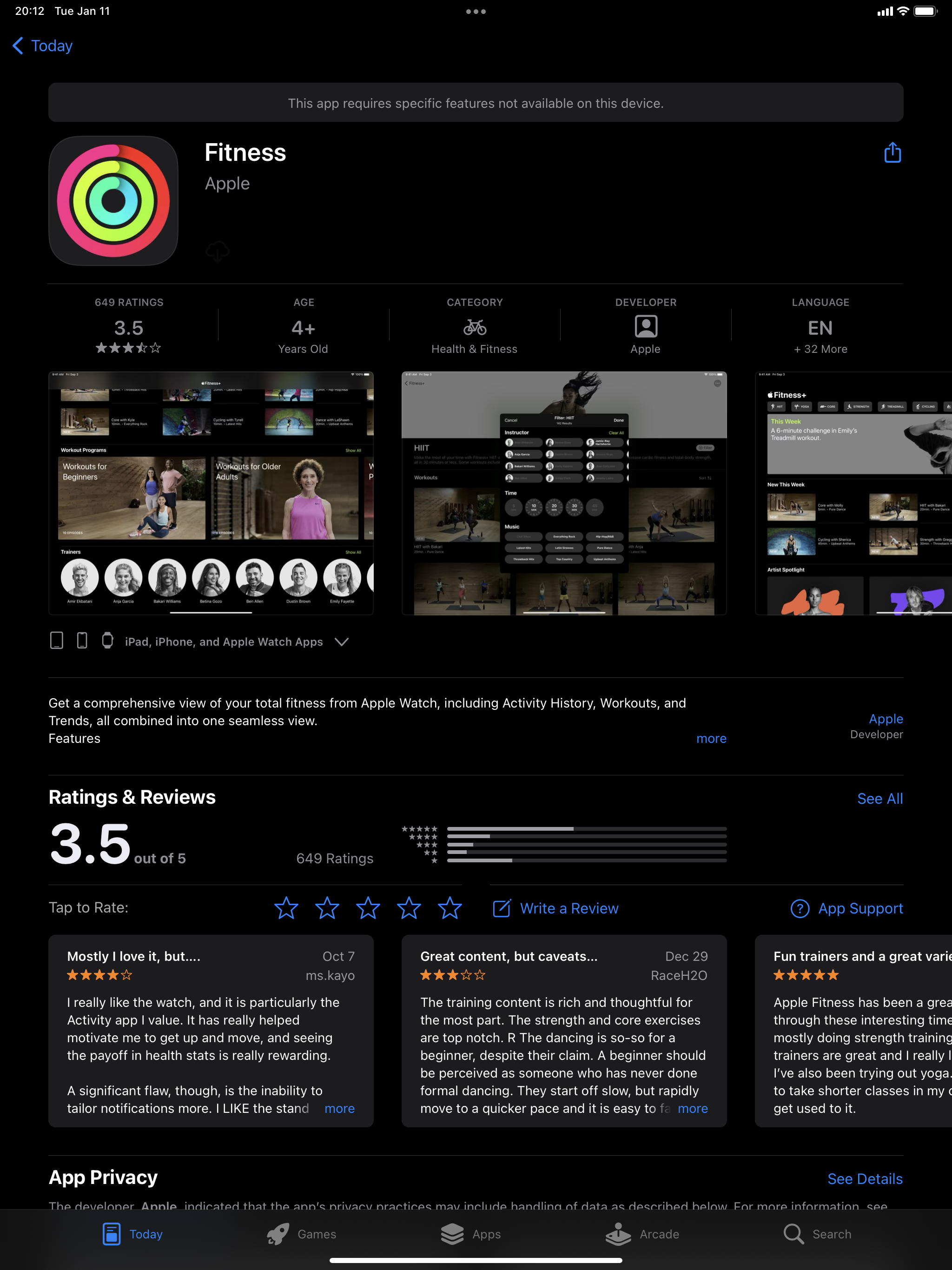 iPad无法下载Fitness应用,提示This app requires specific features not available on this device.