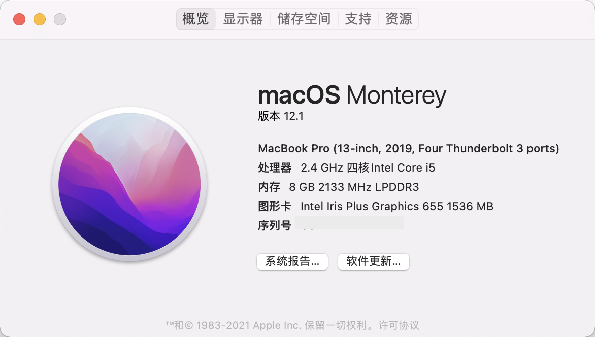 MacBook Pro 13″, macOS 12.1