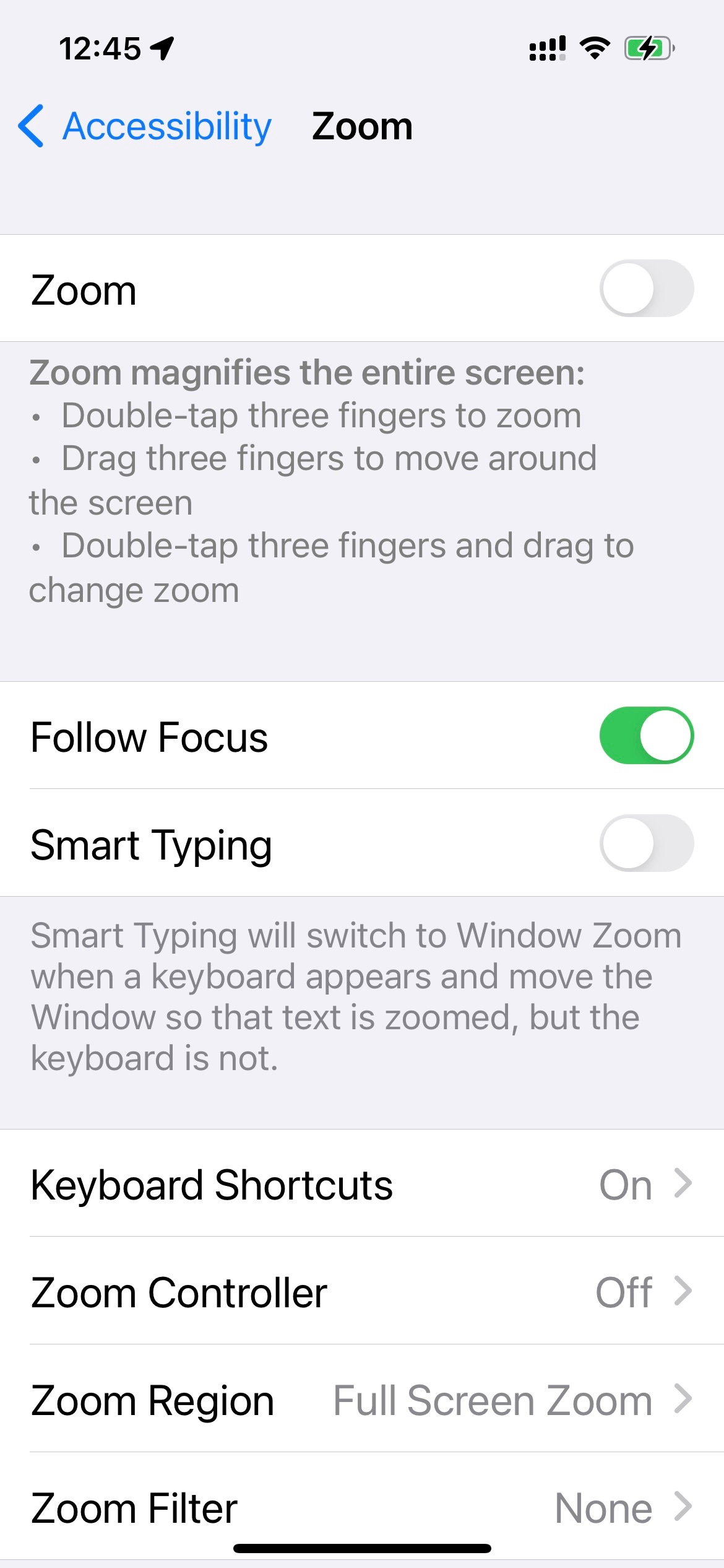 It's not easy to turn One-Handed Keyboard on when Zoom mode is on, there should be some text hints besides Settings > General > Keyboards, telling the user that if they want to use the side keyboard, they need to go to Settings > Accessibility > Zoom to get the zoomed mode off first!