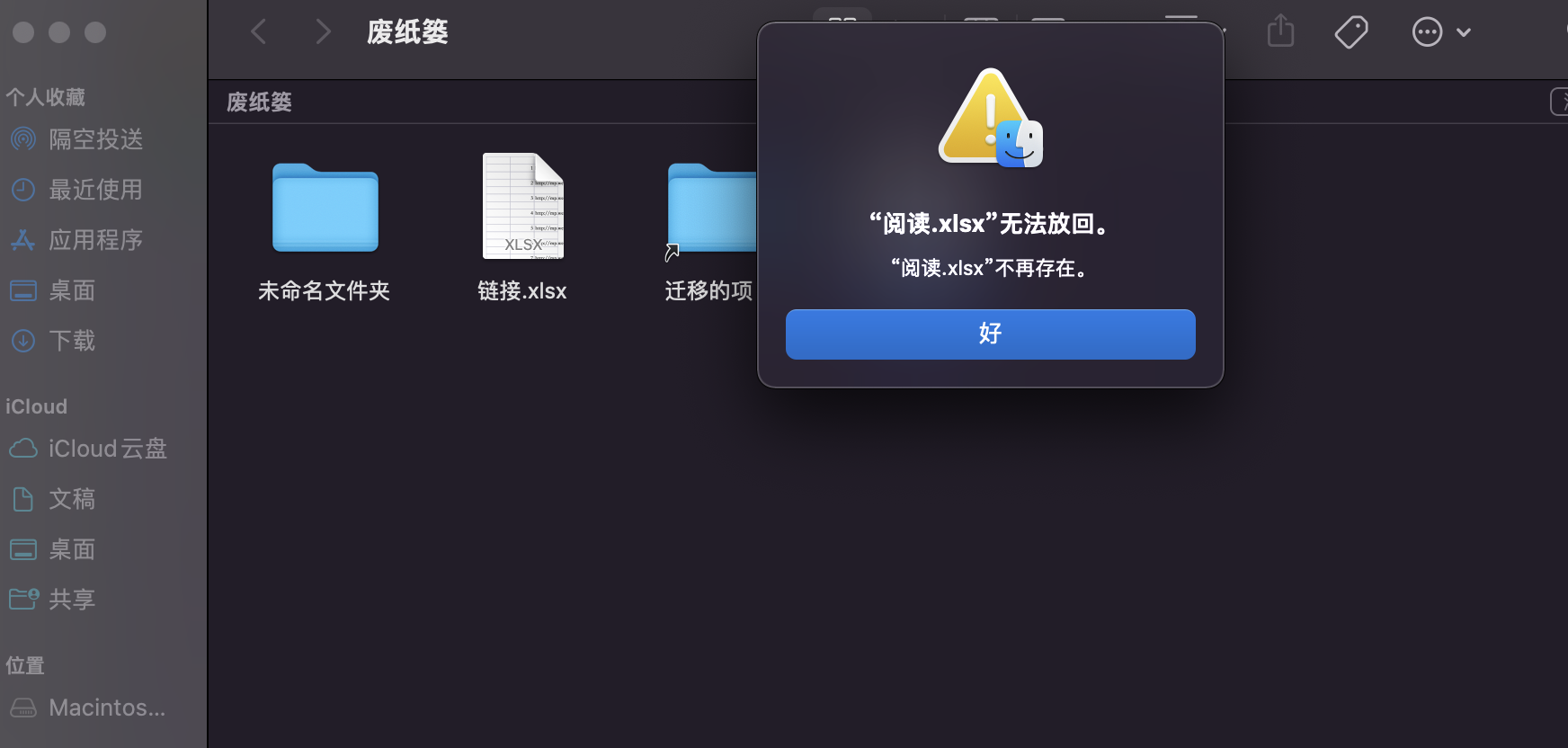 M1 MacBook Air废纸篓中的文件无法放回原处